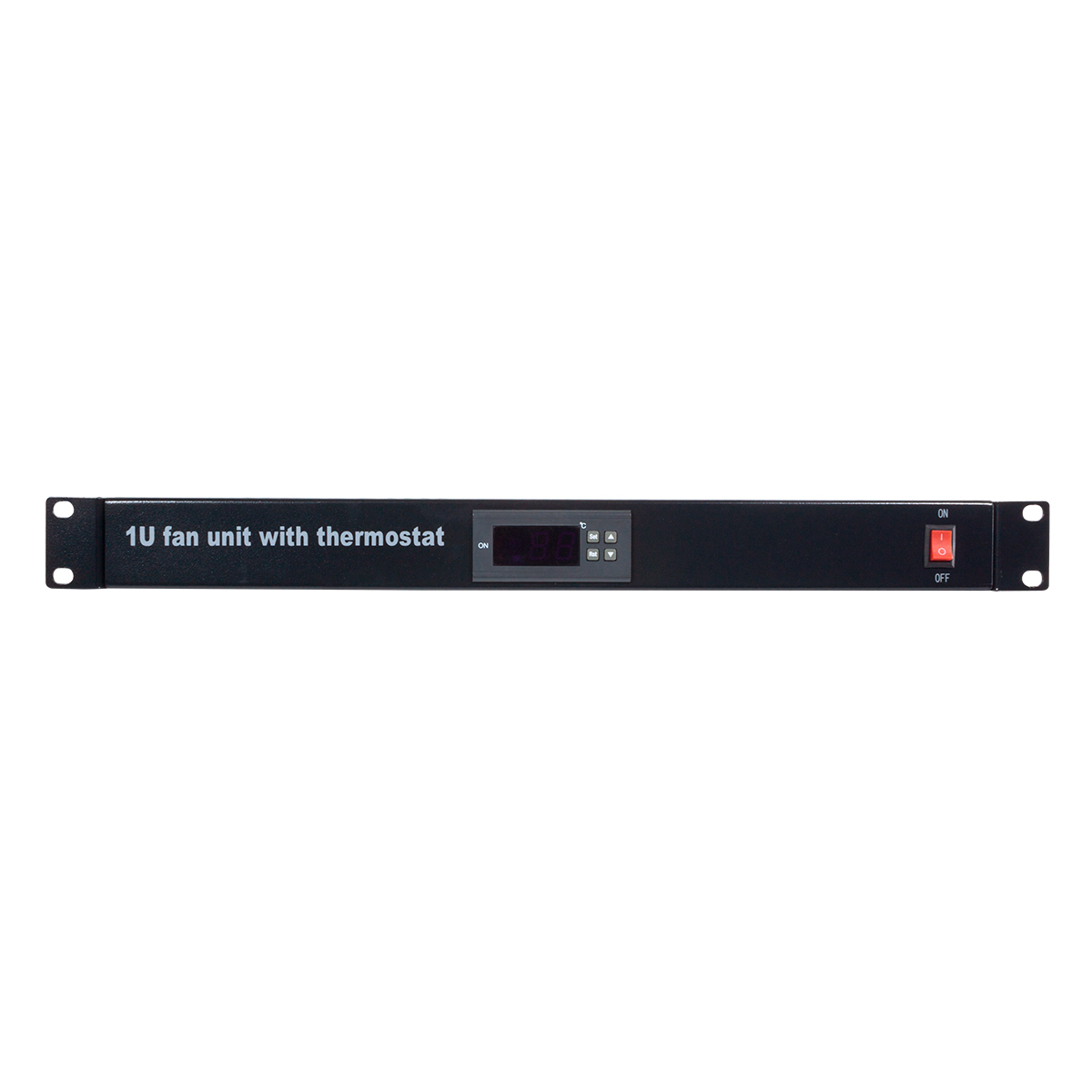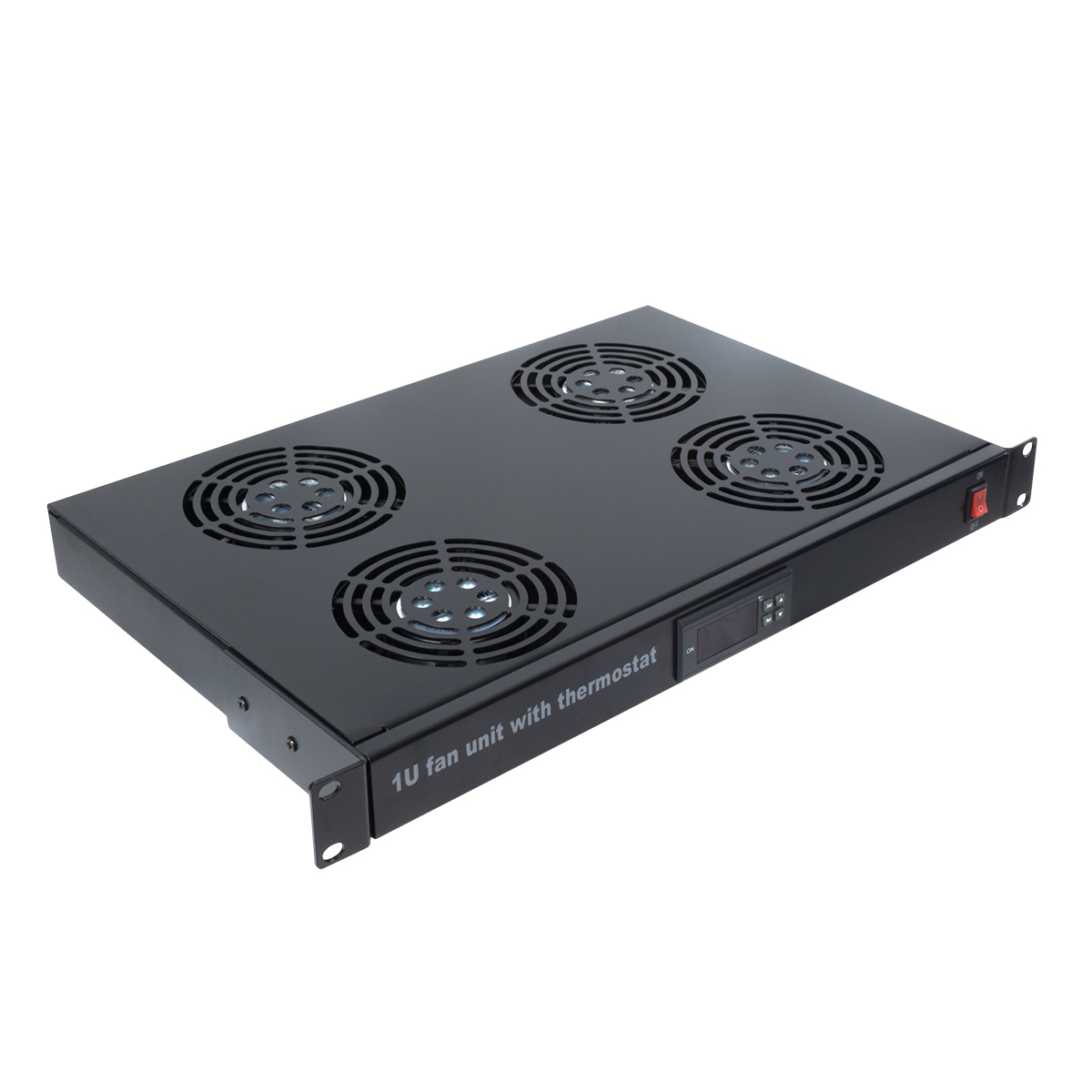 El termostato digital de 4 ventiladores de Aiten Data tiene un ancho estándar de 19” y 1U de altura. Su función es controlar la temperatura en el interior del armario rack y activar los ventiladores cuando se alcance el máximo seleccionado.Posee una pantalla digital donde se pueden controlar los grados, un interruptor on-off, conexión eléctrica 220V 50HZ, clavija tipo europeo, sensores de temperatura, y cuatro ventiladores de 12 cm de diámetro y de rodamiento de bola.Fabricado en acero laminado en frío y acabado en pintura negra antióxido y recubrimiento en polvo, posee anclajes laterales para un fácil fijación en los armarios rack.