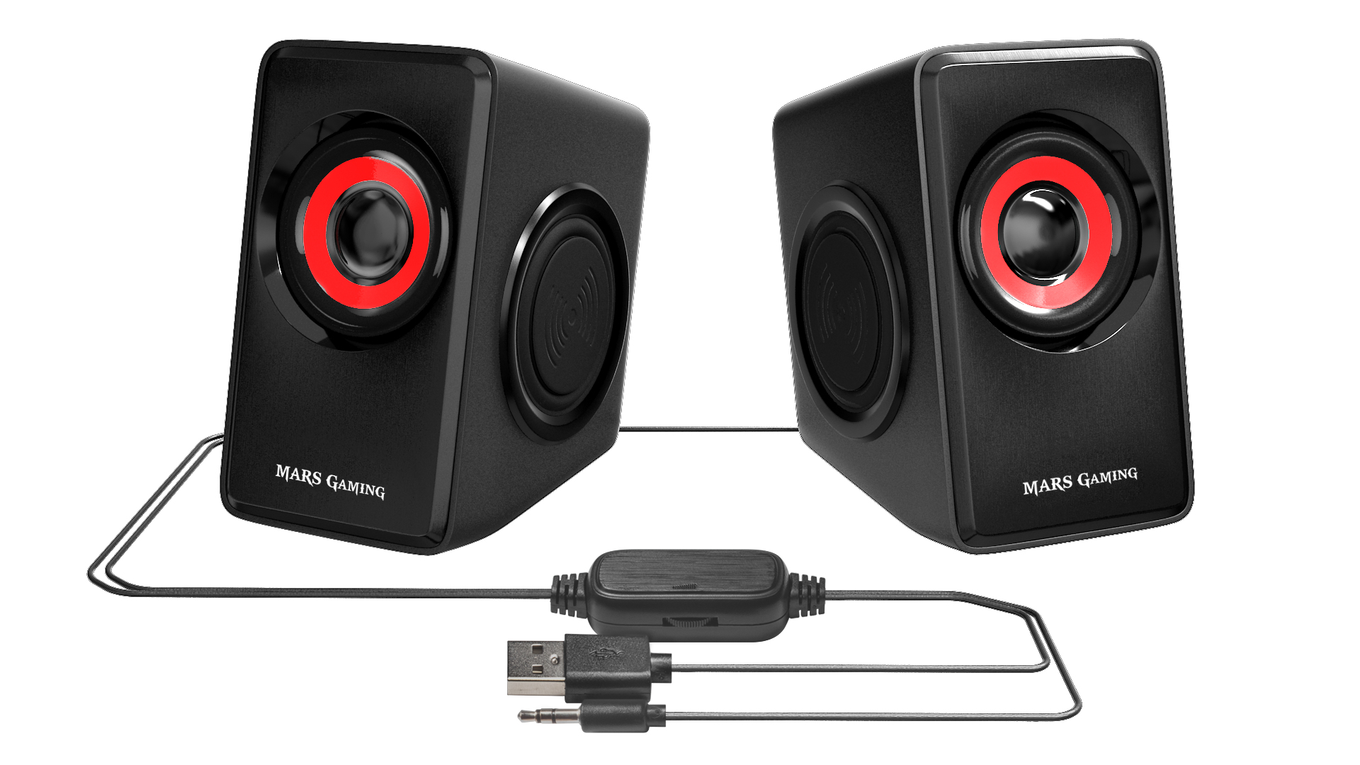 Adéntrate en el gaming con los MS1. Compactos y equipados con 6 drivers de sonido y 10W de potencia, estos altavoces cubrirán todas tus necesidades.Diseño gaming totalEl cuidado diseño en rojo y negro brillante de los MS1 hacen de estos altavoces una opción totalmente gaming, con una imagen elegante y agresiva.Tamaño compactoEl reducido tamaño y la alimentación a través de USB te permitirán llevártelos y disfrutar de tus sesiones gaming donde quieras, sin perder la emoción del juego con el mejor sonido.Drivers pasivosLos nuevos altavoces MS1 cuentan con un innovador sistema de sonido con 6 drivers, 2 activos y 4 pasivos, que convertirán tus sesiones de juego en una experiencia gaming total gracias a sus impactantes graves. ¡Disfruta de un sonido espectacular en unos altavoces de tamaño reducido!Altavoces gamingLos MS1 son los primeros altavoces de la gama Mars Gaming pensados por y para gamers. Con un tamaño reducido, perfecto para los escritorios más pequeños, ofrecen una potencia sorprendente de 10W que te hará vivir una inmersión total en el juego.