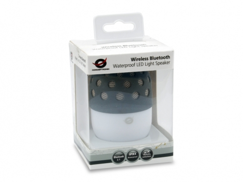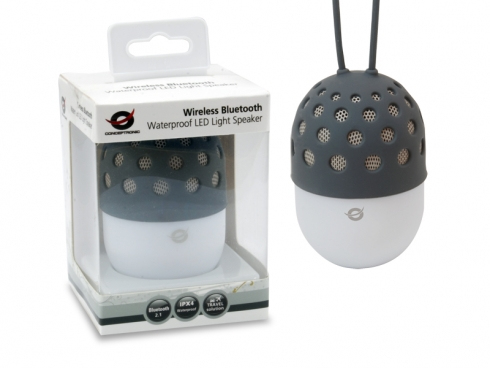 El Altavoz con luz de LED Bluetooth impermeable e inalámbrico Conceptronic es un original dispositivo multimedia con tecnología Bluetooth que puede conectarse a cualquier ordenador, portátil, PDA o teléfono móvil con función Bluetooth. Diseñado con un asa que facilita el transporte, simplemente tiene que colgar el altavoz en una posición elevada y disfrutar de una música estéreo con sonido envolvente de 360°. Cree diversos ambientes cambiando a los distintos modos de flash de LED y haciendo coincidir la luz con la música. Con una carcasa impermeable, el altavoz es perfecto para actividades al aire libre como acampadas, fiestas, barbacoas en la playa o donde la vida te lleve.