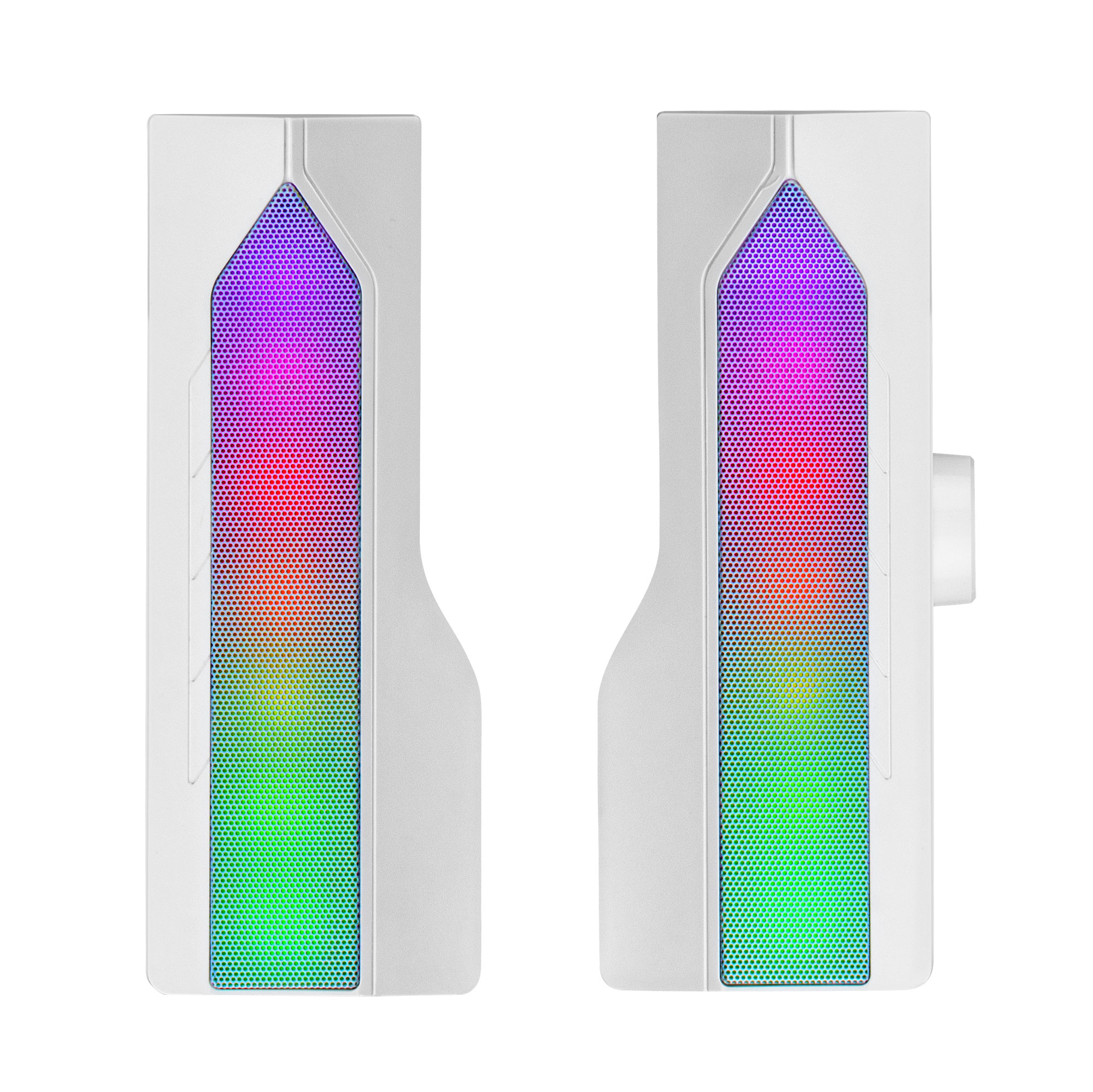 2 en 1: soundbar o altavoces 2.0. Tú eliges. Espectacularidad máxima con el sistema RGB MESH, avanzado procesador de sonido DSP con espacialidad multinivel y graves mejorados, conectividad total jack + Bluetooth 5.0 y un cómodo sistema de control.15W DE POTENCIADisfruta sin limitaciones de volumen y una calidad de sonido excepcional durante tus partidas, viendo películas, series o escuchando música. Y todo ello con una cómoda alimentación a través de USB.ELIGE TU COLOR: BLANCO O NEGRODisponible en dos acabados, blanco y negro. ¡Escoge el que mejor se adapte a tu setup! ILUMINACIÓN RGBRGB MESHLlena de luz y color tu setup con un impresionante sistema de iluminación RGB MESH. Selecciona entre espectaculares modos de iluminación dinámica RGB gracias a su cómodo sistema de control. PROCESADOR DE SONIDO DSP + REFLEXGracias a su avanzado procesador de sonido DSP digital y al posicionamiento invertido de los drivers de sonido REFLEX, el MSDUO reproduce el sonido con una espacialidad multinivel y graves mejorados, metiéndote de lleno en el centro de acción y haciéndote disfrutar como nunca.2en1: SOUNDBAR O ALTAVOCESGracias a su avanzada estructura, MSDUO puede ser una espectacular soundbar o puede separarse en dos y funcionar como un sistema de altavoces 2.0. Versatilidad máxima en cualquier situación.BLUETOOTH 5.0 + JACKVersatilidad total gracias a su conexión jack aux-in e inalámbrica de última generación Bluetooth 5.0. Utilízalo sin límites ni limitaciones, con tu PC, consola, televisor o smartphone.