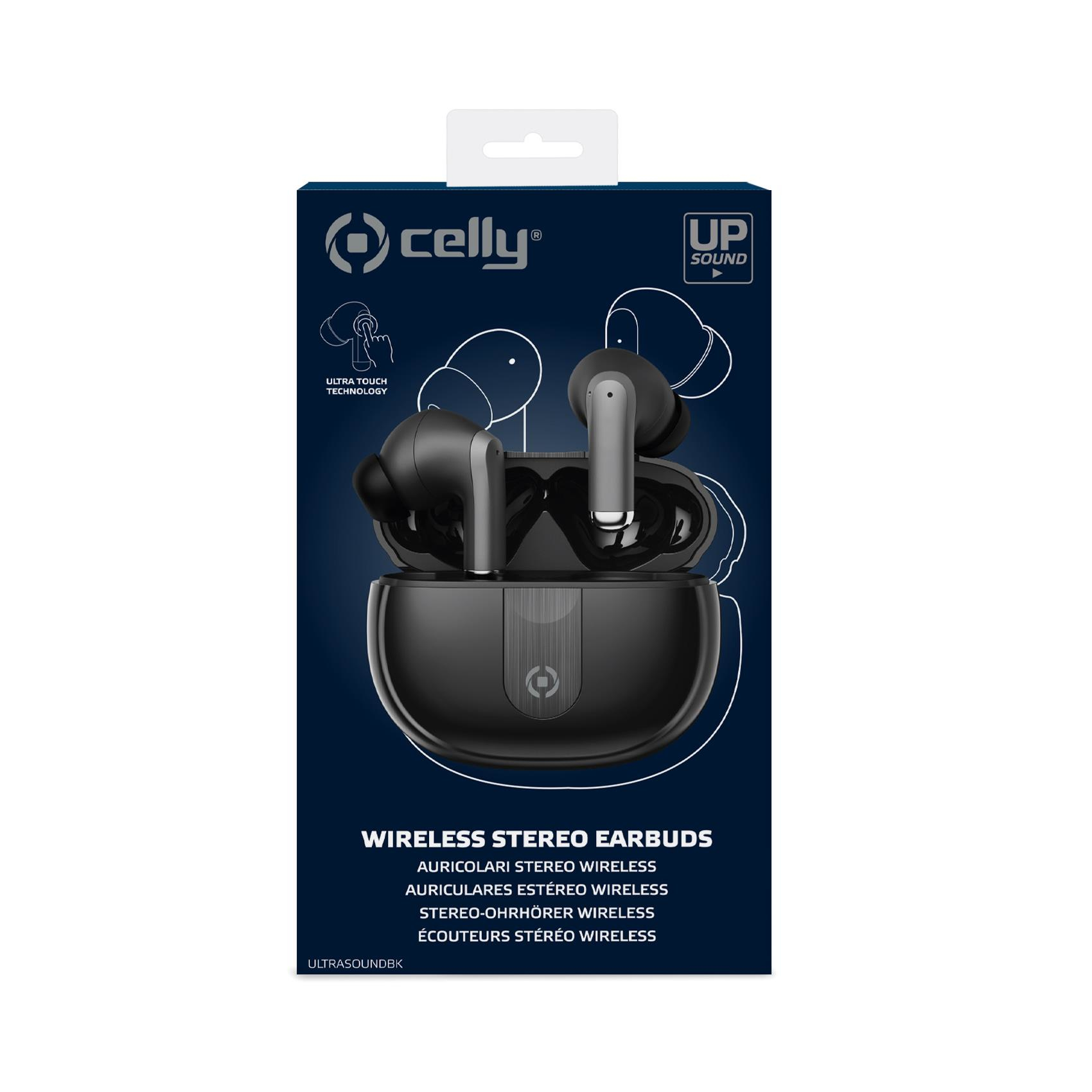 Celly ULTRASOUND. Tipo de producto: Auriculares. Tecnología de conectividad: True Wireless Stereo (TWS), Bluetooth. Uso recomendado: Llamadas/Música. Frecuencia de auricular: 20 – 20000 Hz. Alcance inalámbrico: 10 m. Color del producto: Negro