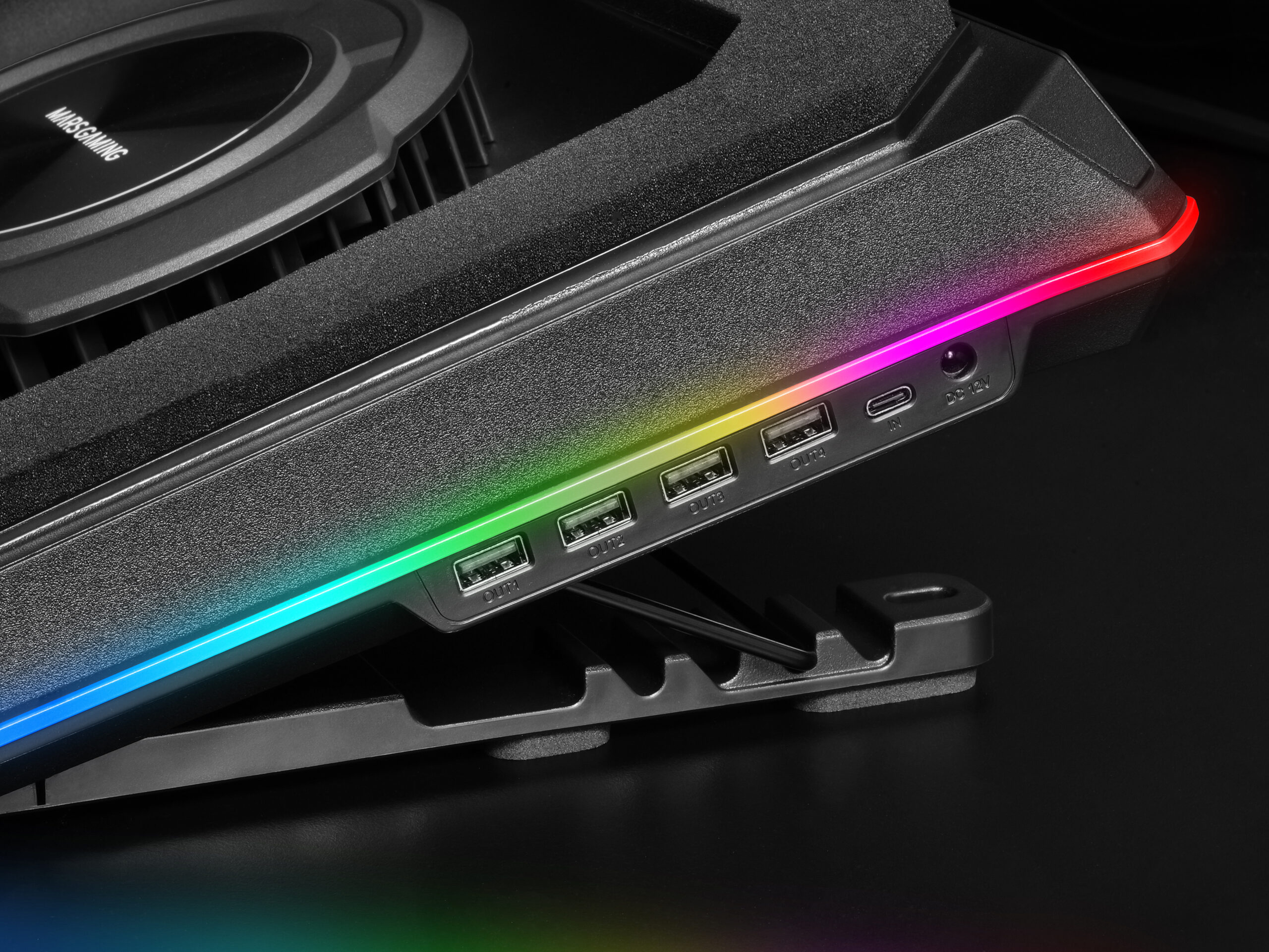 BASE DE REFRIGERACIÓN Y STAND MNBC-ULTRALa base refrigeradora MNBC-ULTRA lleva la refrigeración portátil a otro nivel con su ventilador central ultra potente de 140mm que alcanza hasta 2400RPM, tecnología avanzada CoolCore Airflow y una estructura robusta pensada para la eficiencia térmica y la comodidad. Con iluminación RGB Chroma, base ajustable en 5 posiciones, hub USB con 4 puertos USB-A y un soporte extraíble para smartphone, está diseñada para ofrecer el máximo rendimiento en portátiles de hasta 18″.DISEÑO IMPONENTE CON ILUMINACIÓN RGBLa MNBC-ULTRA combina una estructura premium de acero y ABS con un espectacular sistema de iluminación RGB periférica que envuelve toda la base. Controla los efectos desde el panel integrado y convierte cada partida en un espectáculo visual a la altura de su potencia térmica.TECNOLOGÍA COOLCORE AIRFLOWLa innovadora tecnología CoolCore Airflow canaliza el aire de forma precisa gracias a un diseño hermético y juntas de espuma estratégicas, dirigiéndolo justo donde tu portátil más lo necesita. El resultado: una disipación térmica óptima que reduce la temperatura y maximiza el rendimiento de tu equipo.POTENTE VENTILACIÓNEl ventilador de 140mm con control de velocidad y operación silenciosa, alcanza hasta 2400RPM y proporciona un flujo de aire constante y potente, ideal para reducir la temperatura de tu equipo incluso en sesiones exigentes. Alimentado por DC-12V, ofrece una potencia y un rendimiento superior incluso en las sesiones más exigentes.ERGONOMÍA AJUSTABLEAdapta fácilmente la inclinación de la base con su sistema de 5 niveles, optimizando tu postura para sesiones prolongadas de trabajo o juego. Gana en comodidad.CONECTIVIDAD AMPLIADAEl hub integrado incluye 4 puertos USB-A para periféricos y accesorios, junto a un puerto USB-C exclusivo para alimentación, asegurando un rendimiento estable y una instalación sin complicaciones.PORTÁTILES HASTA 18” Y SOPORTE PARA SMARTPHONELa amplia superficie de la MNBC-ULTRA soporta portátiles de hasta 18” sin perder estabilidad. Además, gracias a su soporte desmontable para smartphone, puedes mantener tu móvil siempre a la vista, ideal para notificaciones, multitarea o streaming sin ocupar espacio extra.CONTROL TOTAL AL ALCANCE DE TU MANOLa MNBC-ULTRA incorpora un panel de control intuitivo que te permite ajustar la velocidad del ventilador mediante una rueda de control precisa, adaptando el rendimiento de refrigeración a cada situación. Además, cuenta con un botón dedicado para controlar la iluminación RGB Chroma de la base, ofreciéndote una experiencia visual totalmente personalizable con solo un toque. Todo el control, sin distracciones.