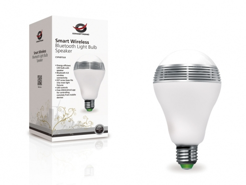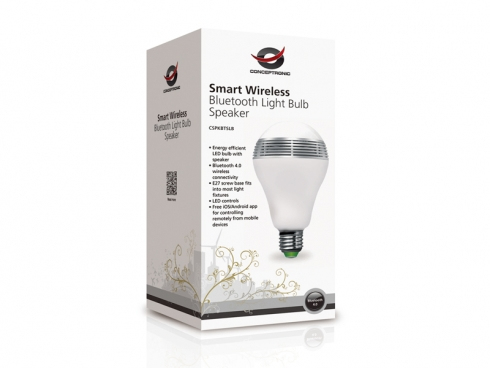 El altavoz-bombilla Bluetooth inalámbrico inteligente de Conceptronic es una bombilla multicolor de LED inteligente, energéticamente eficiente y con tecnología Bluetooth que se puede controlar desde cualquier teléfono móvil o tableta Bluetooth a través de una aplicación Android o iOS. Sensacional para decoración doméstica o cualquier uso en espacios comerciales. Cree diversos ambientes cambiando a música y luces coloreadas diferentes. ¡Excelente tema de conversación en fiestas!