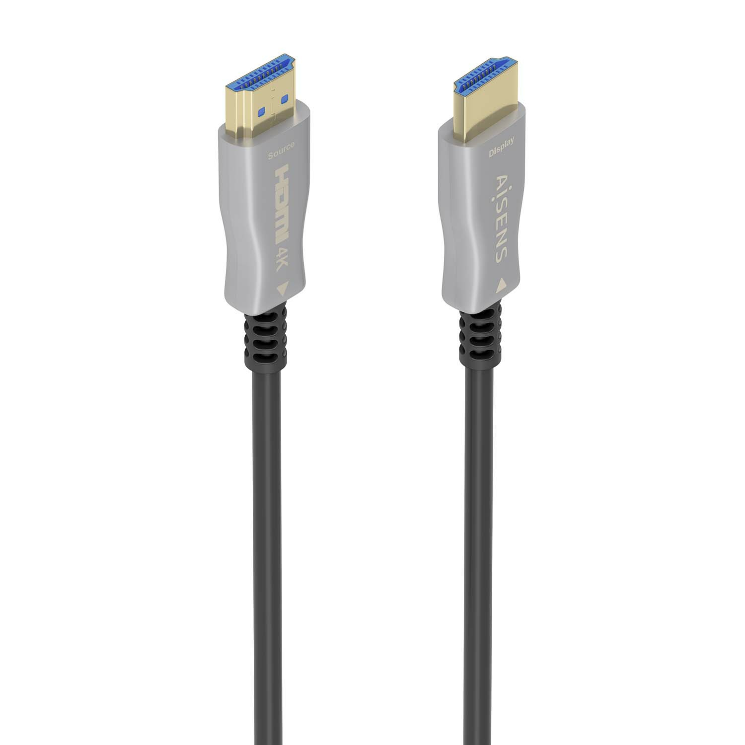 AISENS® – Cable HDMI V2.0 AOC premium alta velocidad con Ethernet con conector tipo A macho en ambos extremos.Fabricado con una mezcla de alambre de fibra óptica y cobre, este cable activo es menos sensible a interferencias EMI, lo cual ofrece una señal clara y fiable de audio/vídeo, incluso en entornos como centros de datos, hospitales, etc.