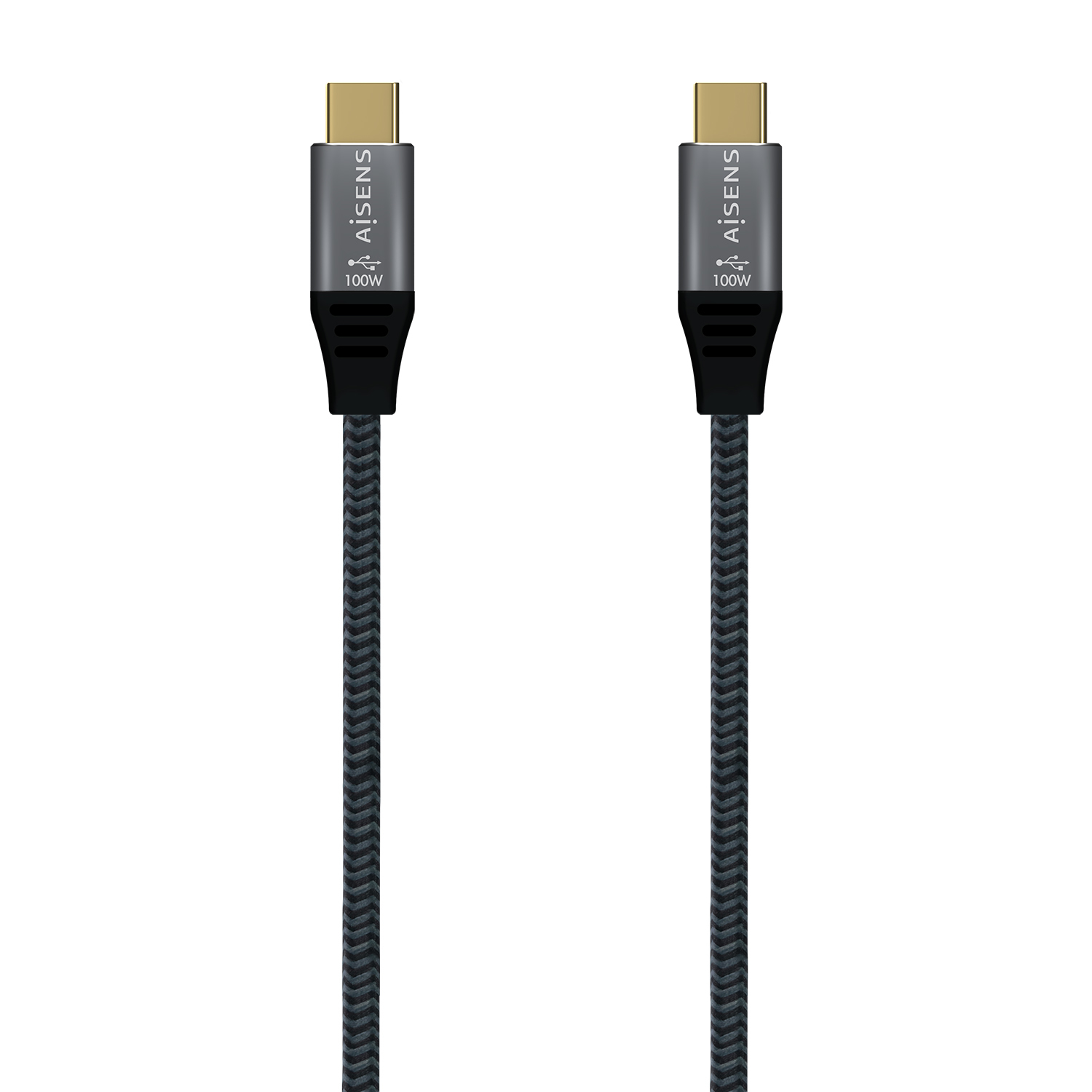 AISENS Cable USB 2.0 Aluminio 5A 100W E-Mark, USB-C/M-USB-C/M, Gris, 1.0M