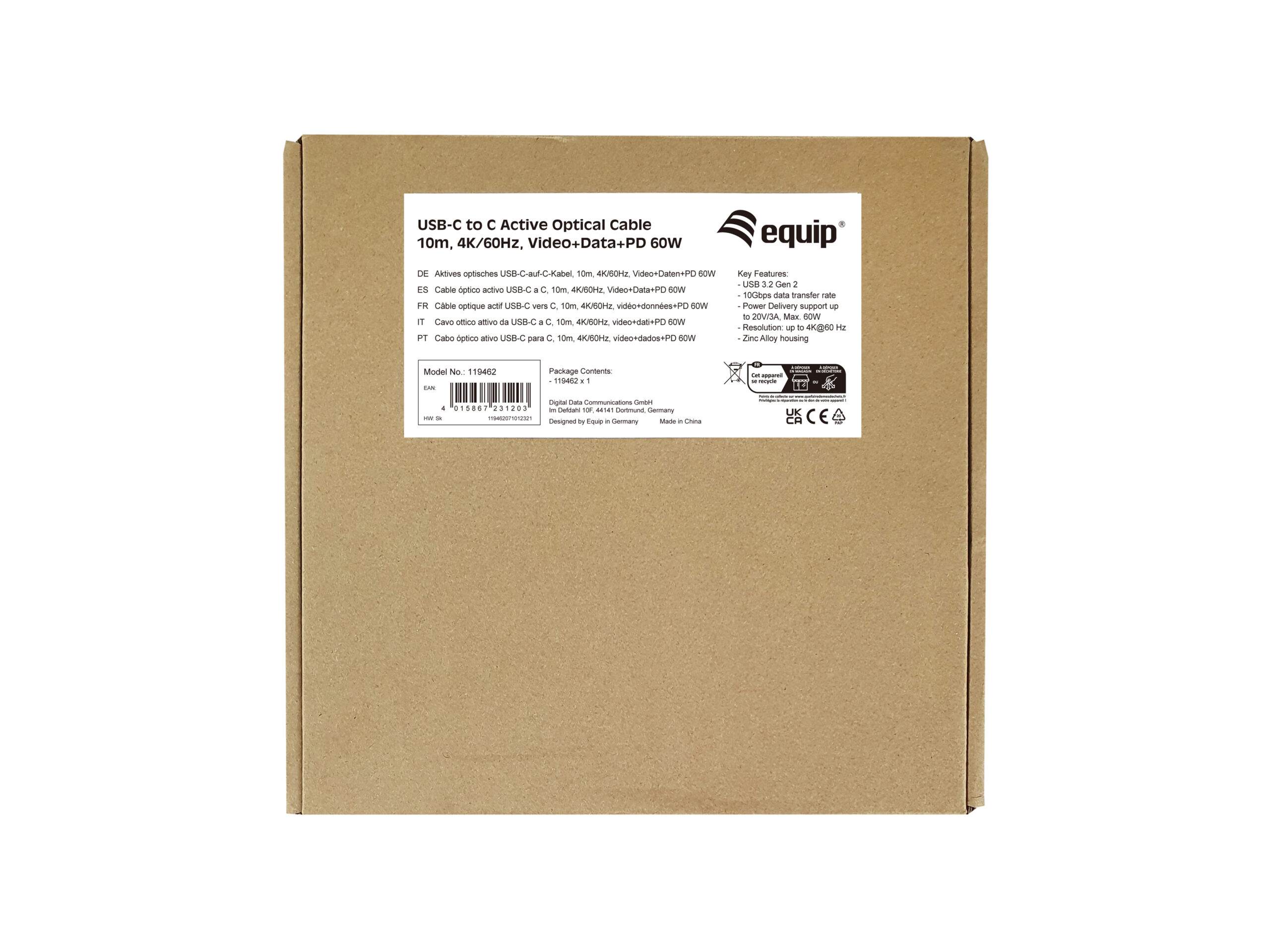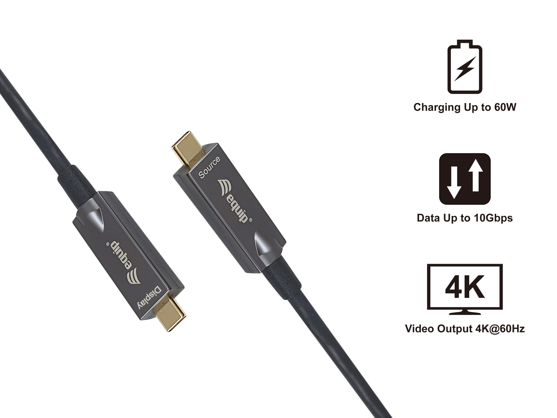 Equip 119462 Cable óptico activo USB-C a C, M/M, 10m, PD 60W, 4K/60Hz, 10Gbps, Vídeo+Datos+PD