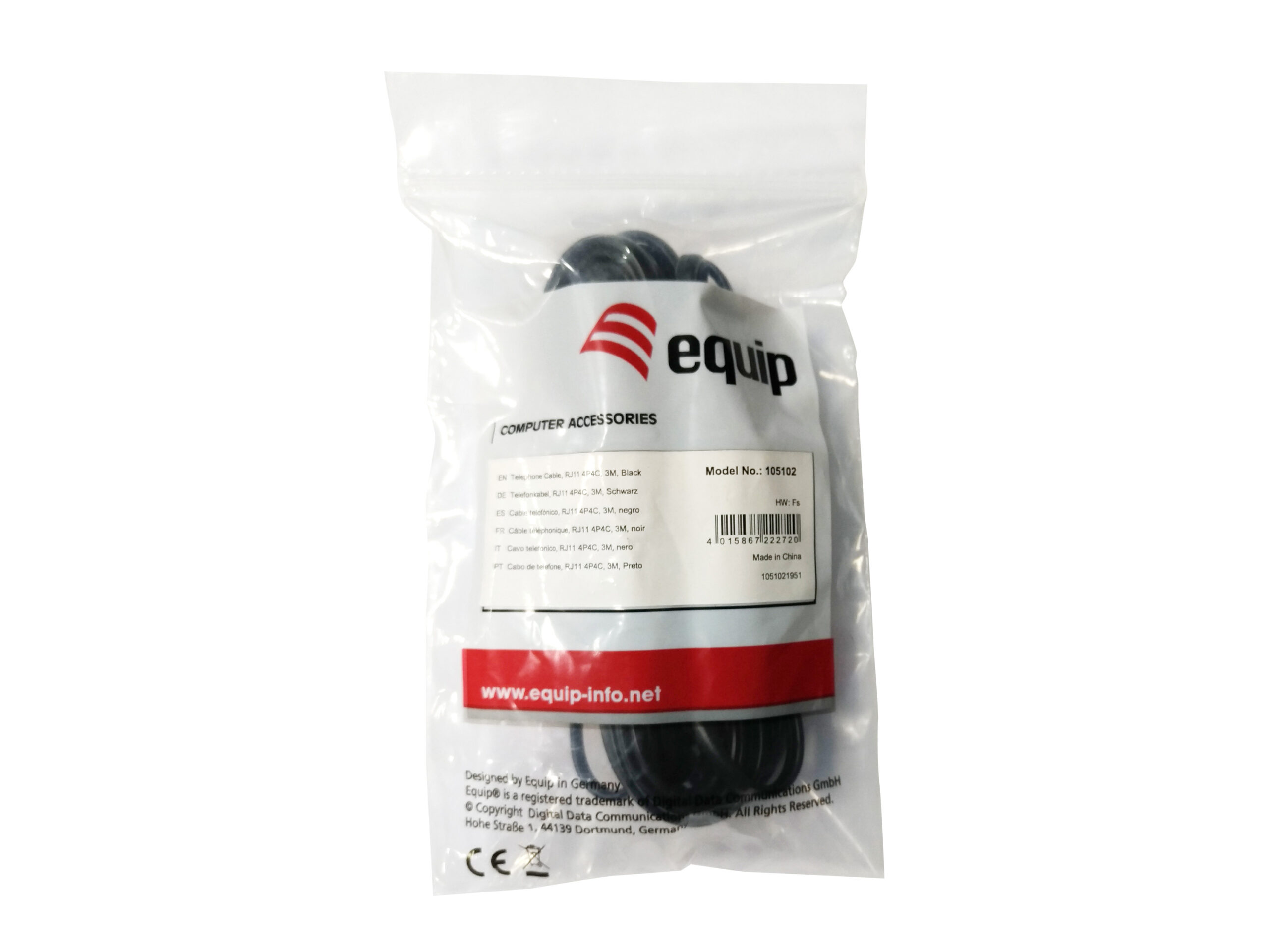 Equip 105104. Longitud de cable: 5 m, Conector 1: RJ-11, Conector 2: RJ-11. Tipo de embalaje: Blister