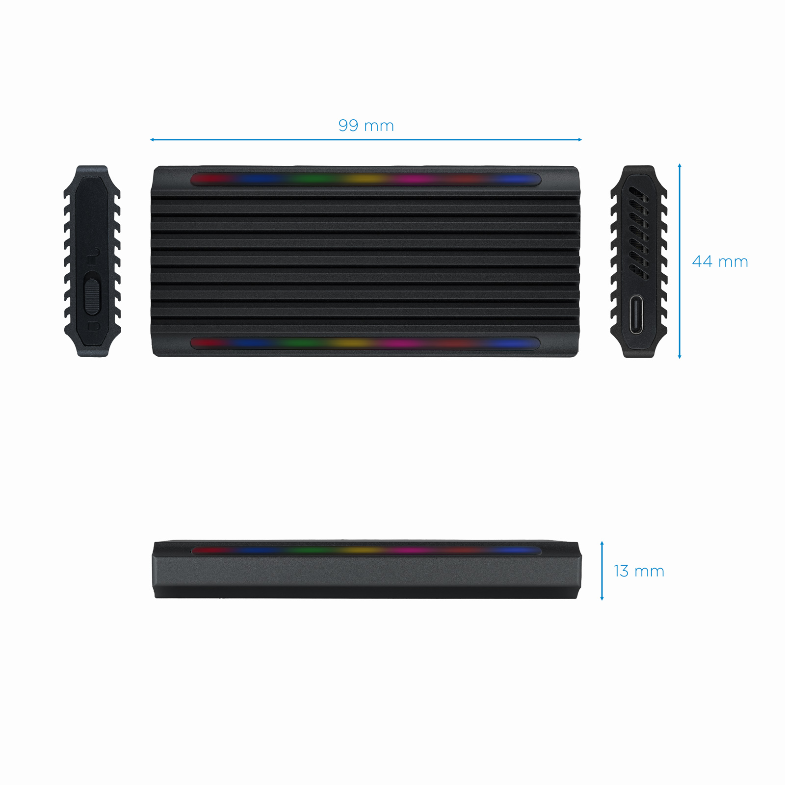 Caja Externa para SSD M.2 NGFF/NVMe “SHINOBI”, USB3.1 GEN2 USB-C RGB, Negro