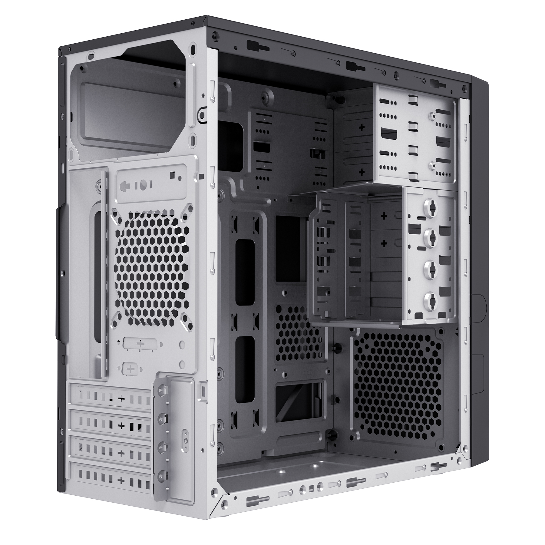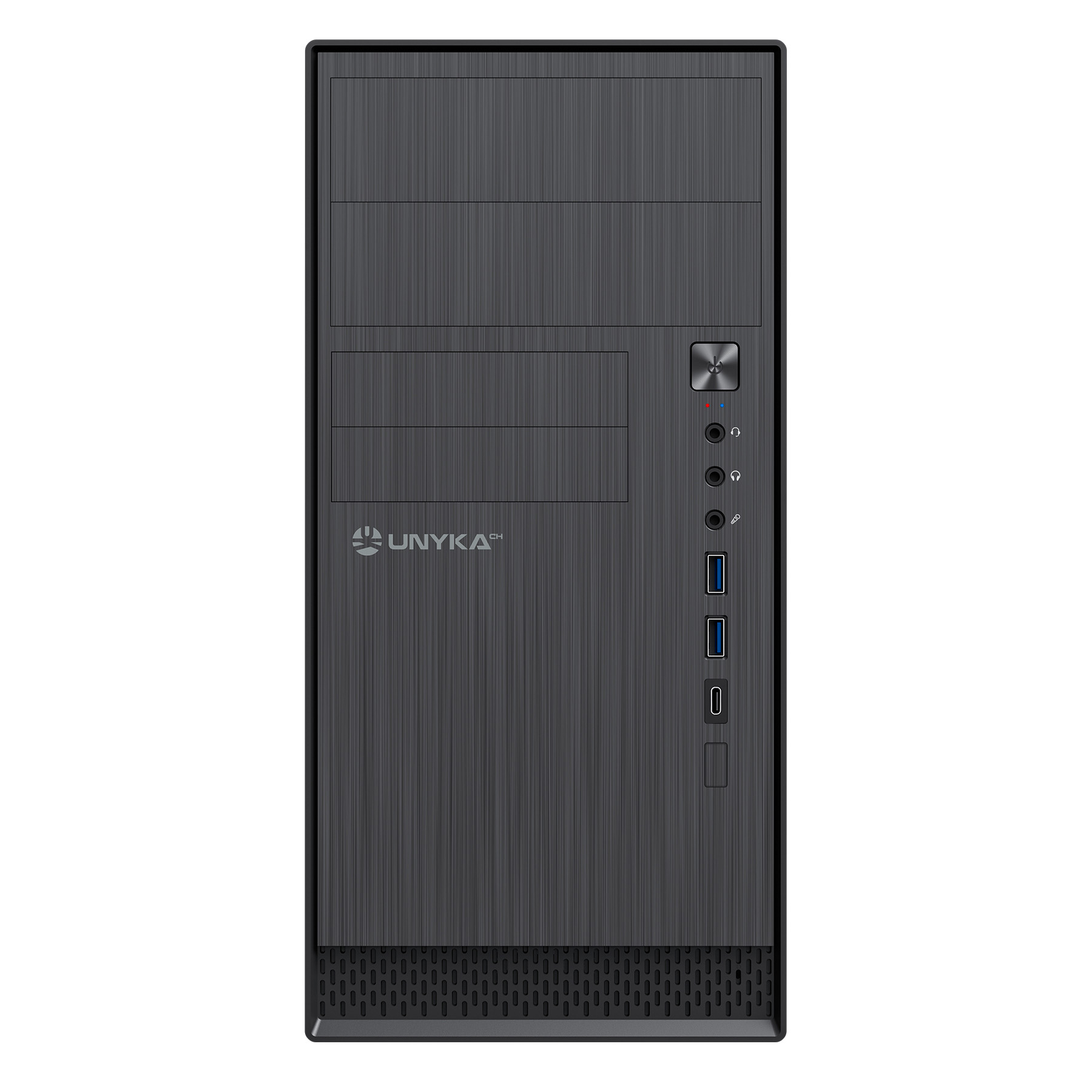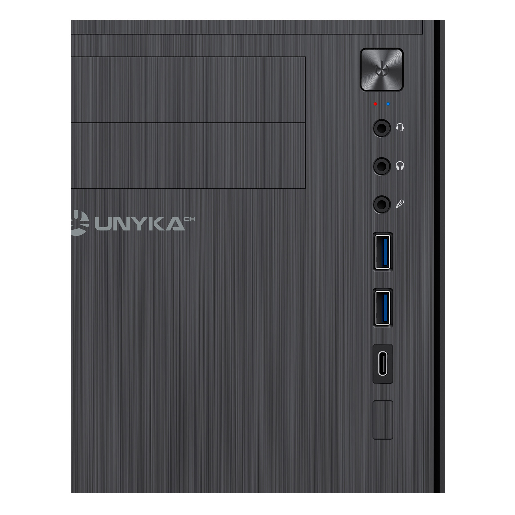 Si estás buscando una caja Micro ATX con un diseño discreto y de corte clásico, la AERO C12 V2 de UNYKAch es la opción perfecta para ti. Esta caja cuenta con un frontal elegante con efecto de aluminio cepillado. Además, la AERO C12 V2 incluye conexiones para dos puertos USB 3.0 y un puerto USB Type C 2.0, lo que permite una fácil conexión de periféricos y dispositivos externos de alta velocidad. También cuenta con conexiones para HD Audio y micrófono para una experiencia de audio de alta calidad.La caja AERO C12 V2 es compatible con fuentes de alimentación ATX (no incluida) que se instala en la parte superior para una mejor gestión de cables, especialmente construida para equipos de oficinas, colegios y usuarios domésticos.CAPACIDAD TOTALAmplio espacio de almacenaje gracias a dos bahías externas de 5,25” y otras dos de 3,5”. También cuenta con siete bahías internas, cinco de 3,5” y otras dos de 2,5”.Aero C12 V2 Micro ATX– Diseño sobrio y elegante con acabados de alta calidad.– 2 USB 3.0 y 1 USB Type C 2.0.FRONTAL FUNCIONALSi buscas una caja Micro ATX compacta y funcional, la AERO C12 V2 de UNYKAch es una excelente opción. Esta caja cuenta con conexiones para dos puertos USB 3.0 y un puerto USB Type C 2.0, lo que permite una rápida conexión de periféricos y dispositivos externos de alta velocidad. Además, la caja también cuenta con conexiones para HD Audio, micrófono y combo para ahorrar cables, para una experiencia de audio de alta calidad.