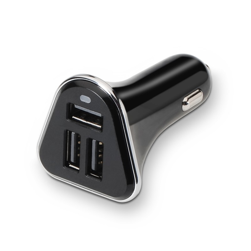 CARGADOR DE COCHE 3xUSB 5V 5.2 A CON CONTROL AI- Cargador de coche con tres puertos de USB. Diseño muy elegante, moderno y práctico.- Tecnología de AI (chip inteligente) incorporado que detecta la corriente de entrada de los dispositivos conectados para maximizar tanto la compatibilidad como la velocidad de carga (hasta 2,4 amperios por cada puerto USB).- Cargue su dispositivo USB de forma fácil y sencilla a través del cable USB.- Circuito de protección contra sobrecargas incorporado que protege su dispositivo USB ante cualquier daño debido a la inestabilidad del voltaje del coche.- Gracias a la salida de 26W 5,2A, este cargador de coche puede cargar simultáneamente tres dispositivos USB a máxima velocidad (hasta 2,4A/Puerto USB).