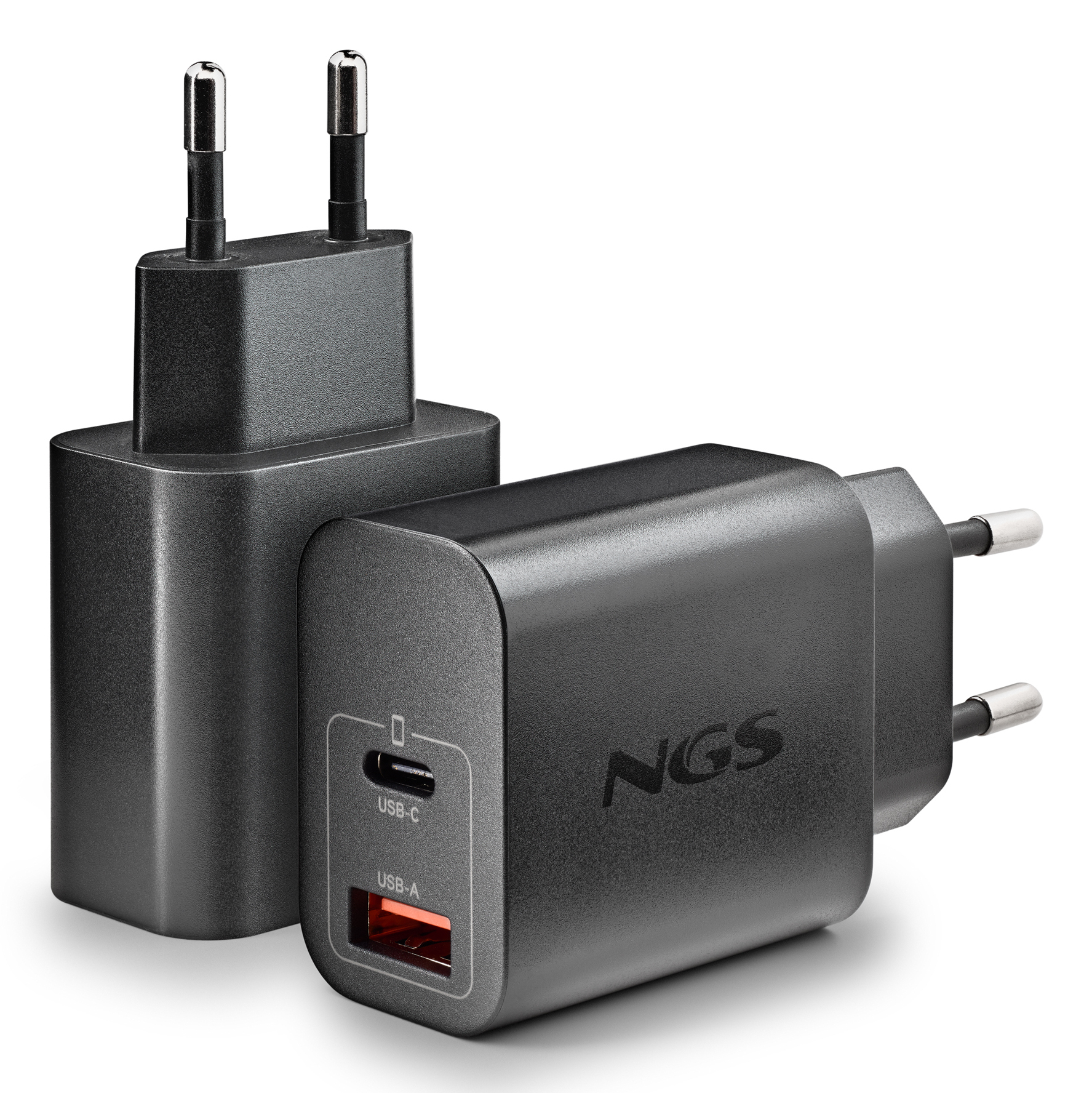 Cargador NGS GaN 20W 1USB-A 1USB-C Negro