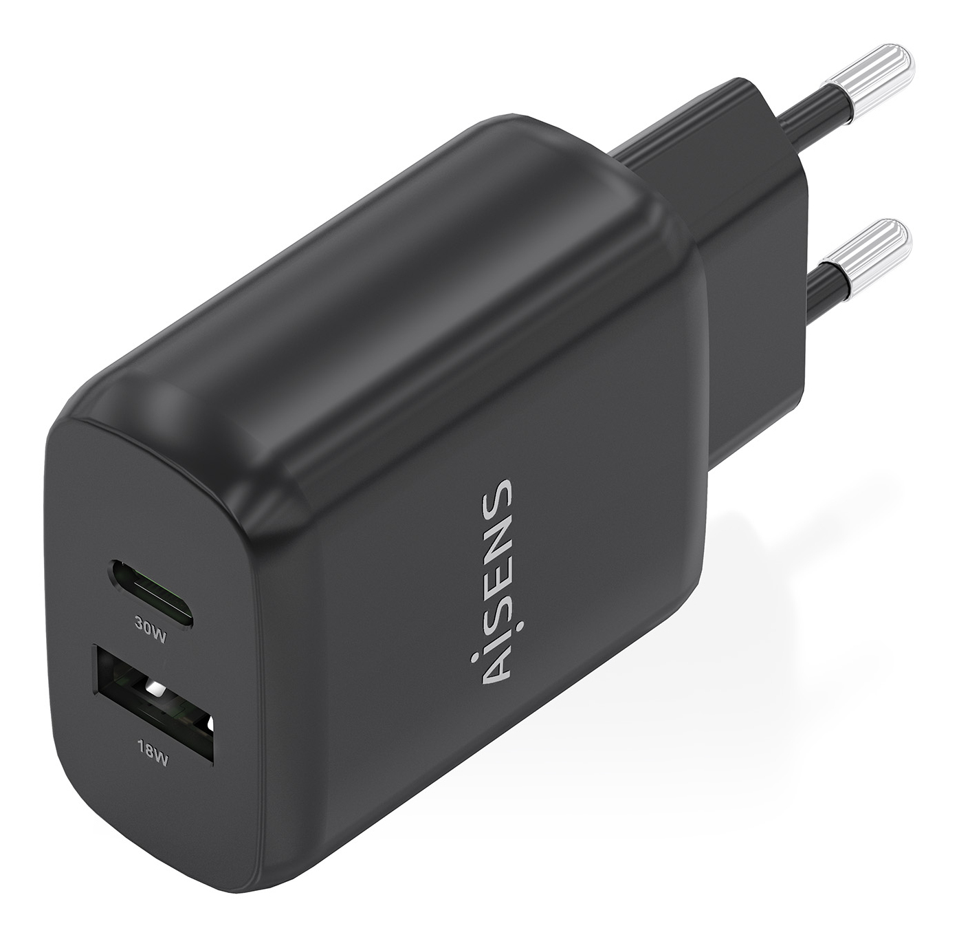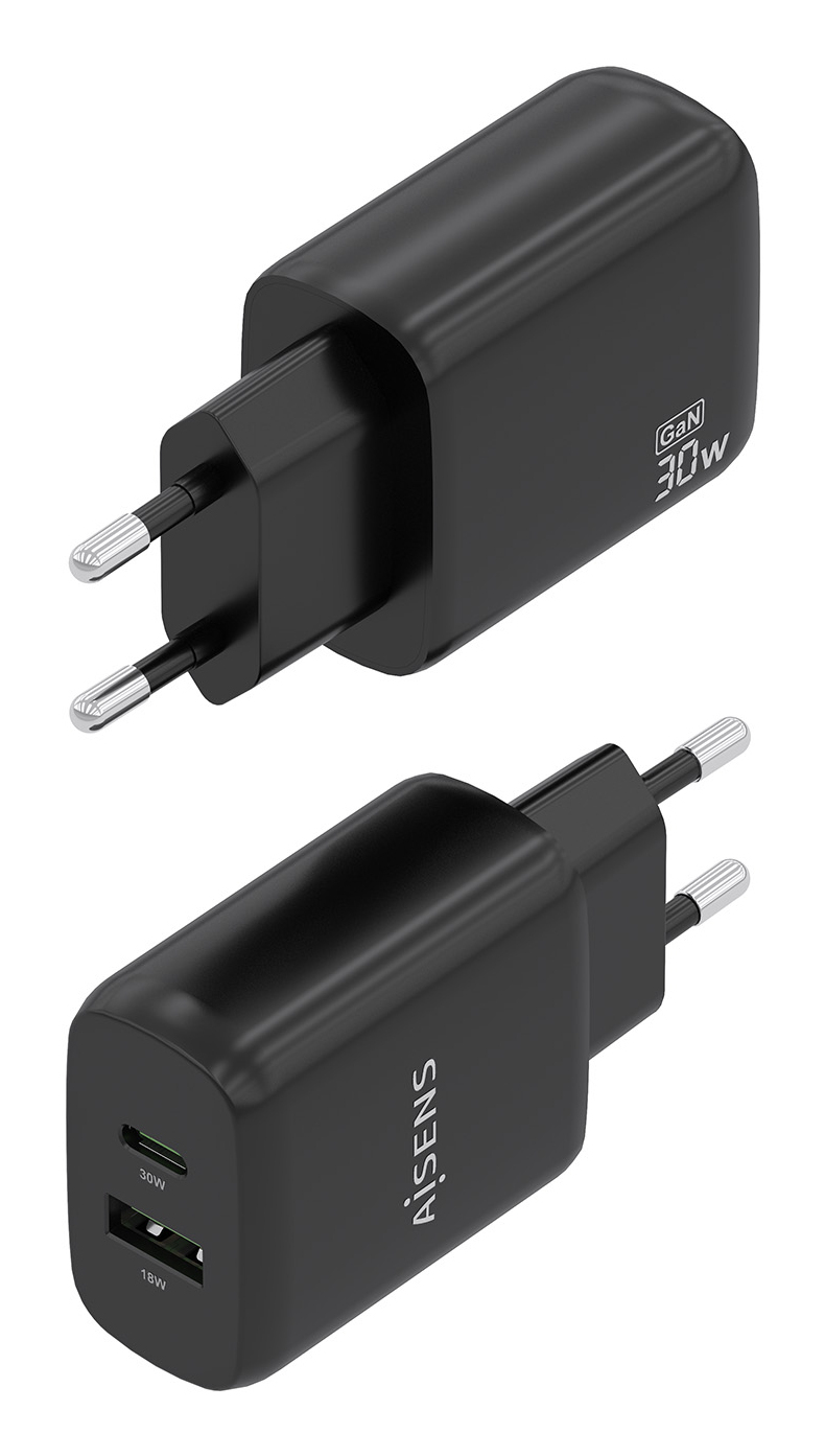 Cargador Pared AISENS 30W USB-A USB-C NegroCargador Pared AISENS 30W USB-A USB-C Negro