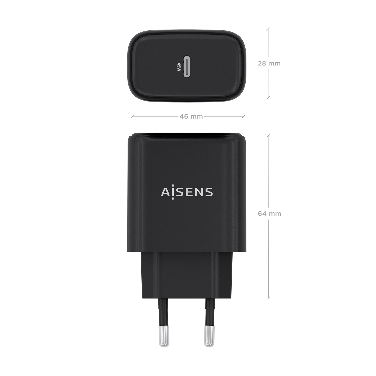 Cargador Pared AISENS GaN 45W USB-C NegroDisponibilidad: Hay existencias
