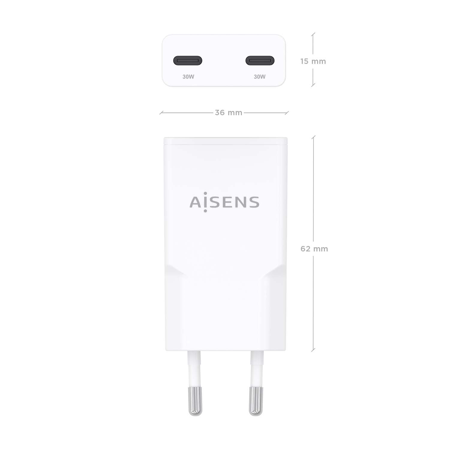 AISENS ASCH-30W2P048-W cargador de dispositivo móvil Cámara digital, MP3, MP4, Teléfono móvil, Navegante, Portátil, Consola de juegos portátil, Smartphone, Tableta, Universal Blanco Corriente alterna Carga rápida Interior