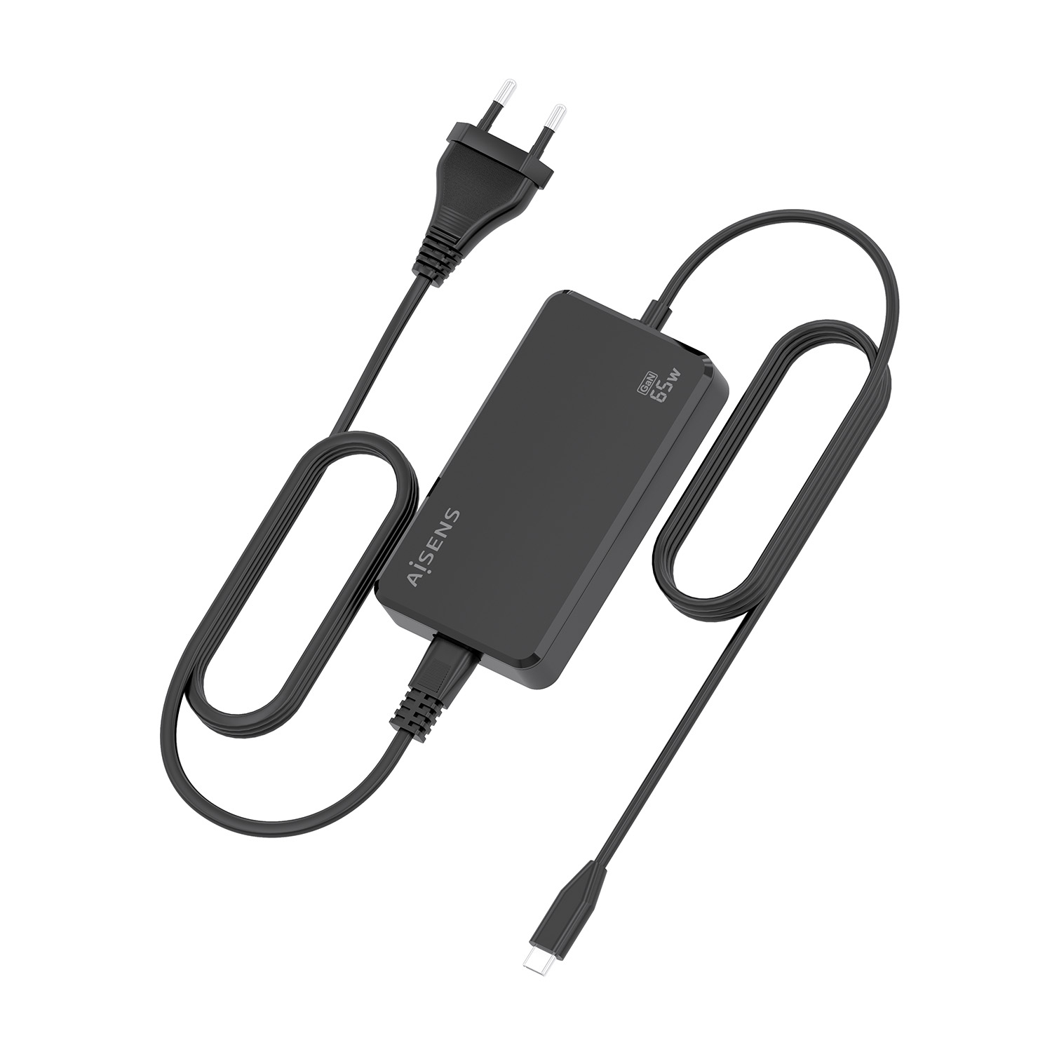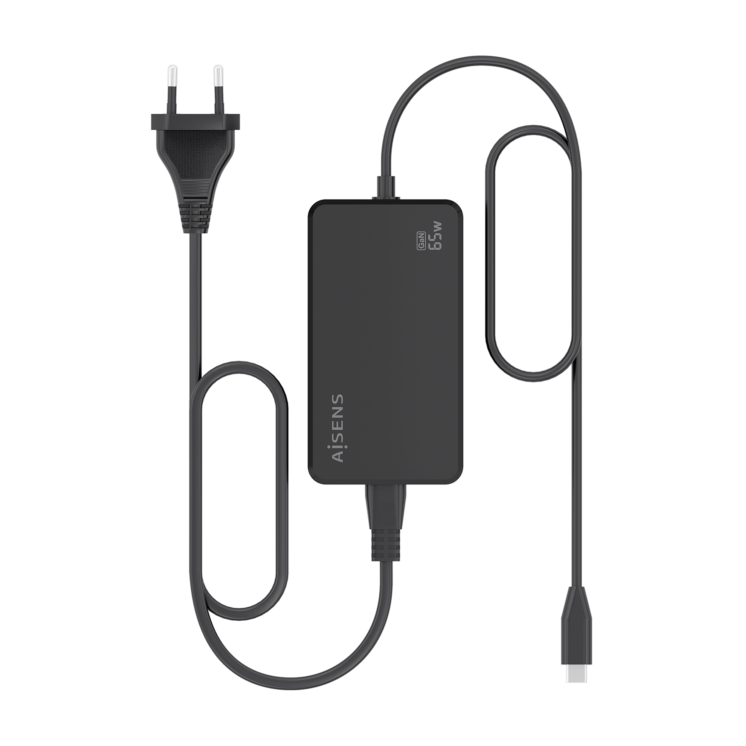 AISENS Cargador De Sobremesa GaN 65W PD3.0 1xUSB-C 1.8m, Negro