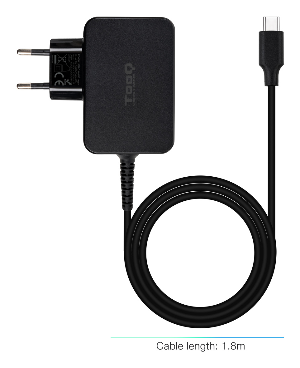 Cargador TooQ USB-C PD 45W NegroCargador TooQ USB-C PD 45W Negro