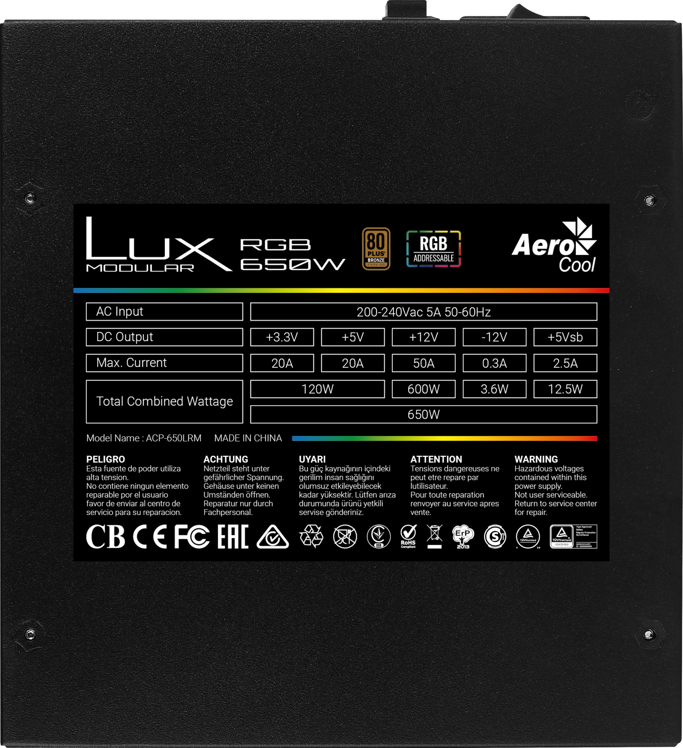 IGIC IncluidoComprar Fuente AEROCOOL LUX 650W RGB 80+ Bronze en Canarias al mejor precio.