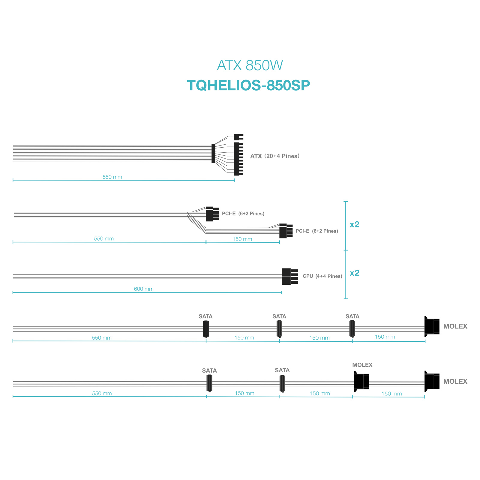 • Longitud del cable de alimentación SATA: 550,700,850,1000