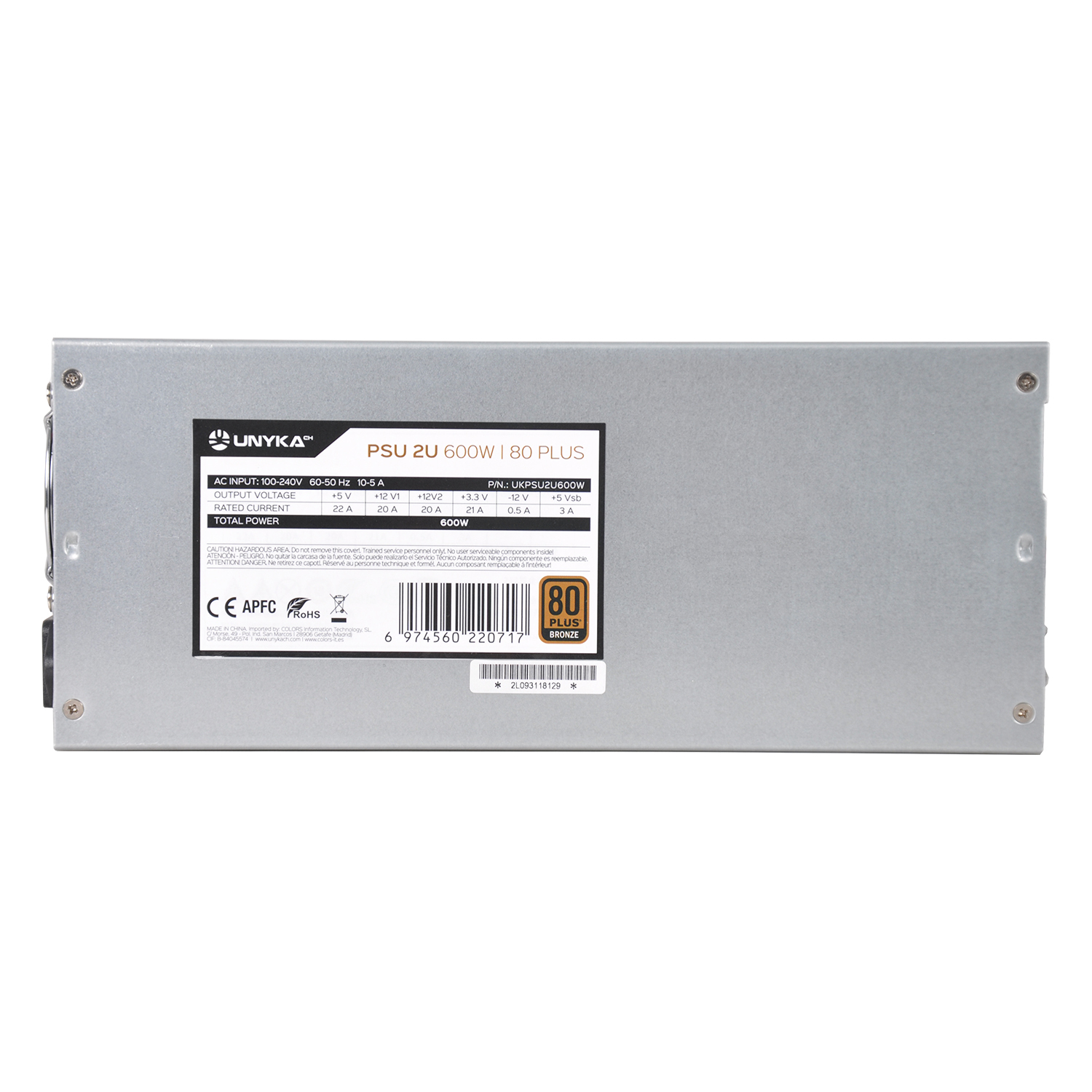 UNYKAch Fuente de Alimentación 2U 600W 80 Plus Bronce