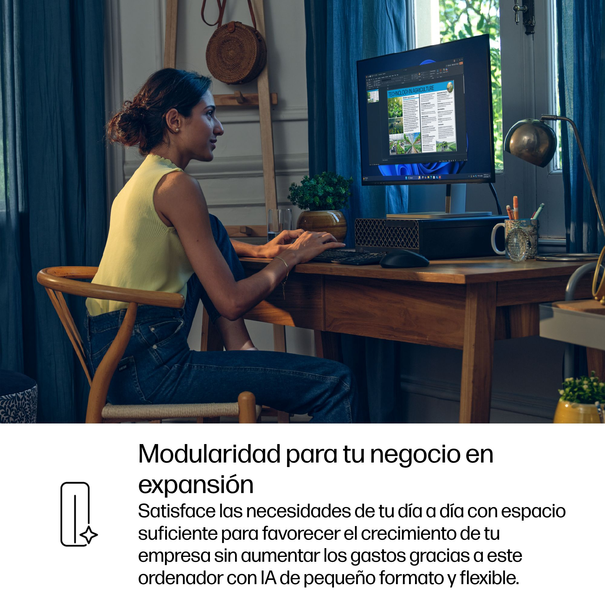 Trabaja de una forma más inteligente con un ordenador habilitado para IA que evoluciona contigoEl ordenador de sobremesa con IA HP ProDesk 4 SFF G1i ofrece a los usuarios de entornos de trabajo en continua evolución una gran personalización y escalabilidad comercial en un diseño que ahorra espacio. El procesador Intel Core™ Ultra[2] y la NPU de 13 TOPS[3] permiten optimizar la gestión de las tareas diarias, distribuyendo la potencia y explorando el potencial de la IA para mejorar el rendimiento empresarial.