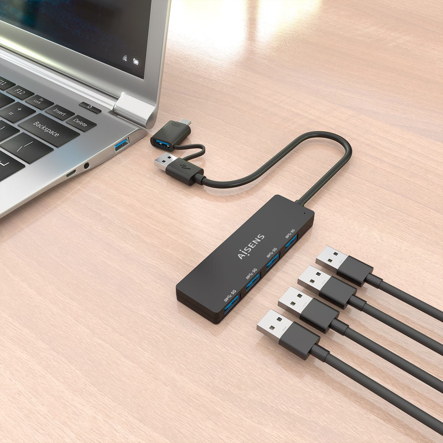 Hub AISENS USB-A + Adap USB-C a 4xUSB-A 3.0Hub AISENS USB-A + Adap USB-C a 4xUSB-A 3.0