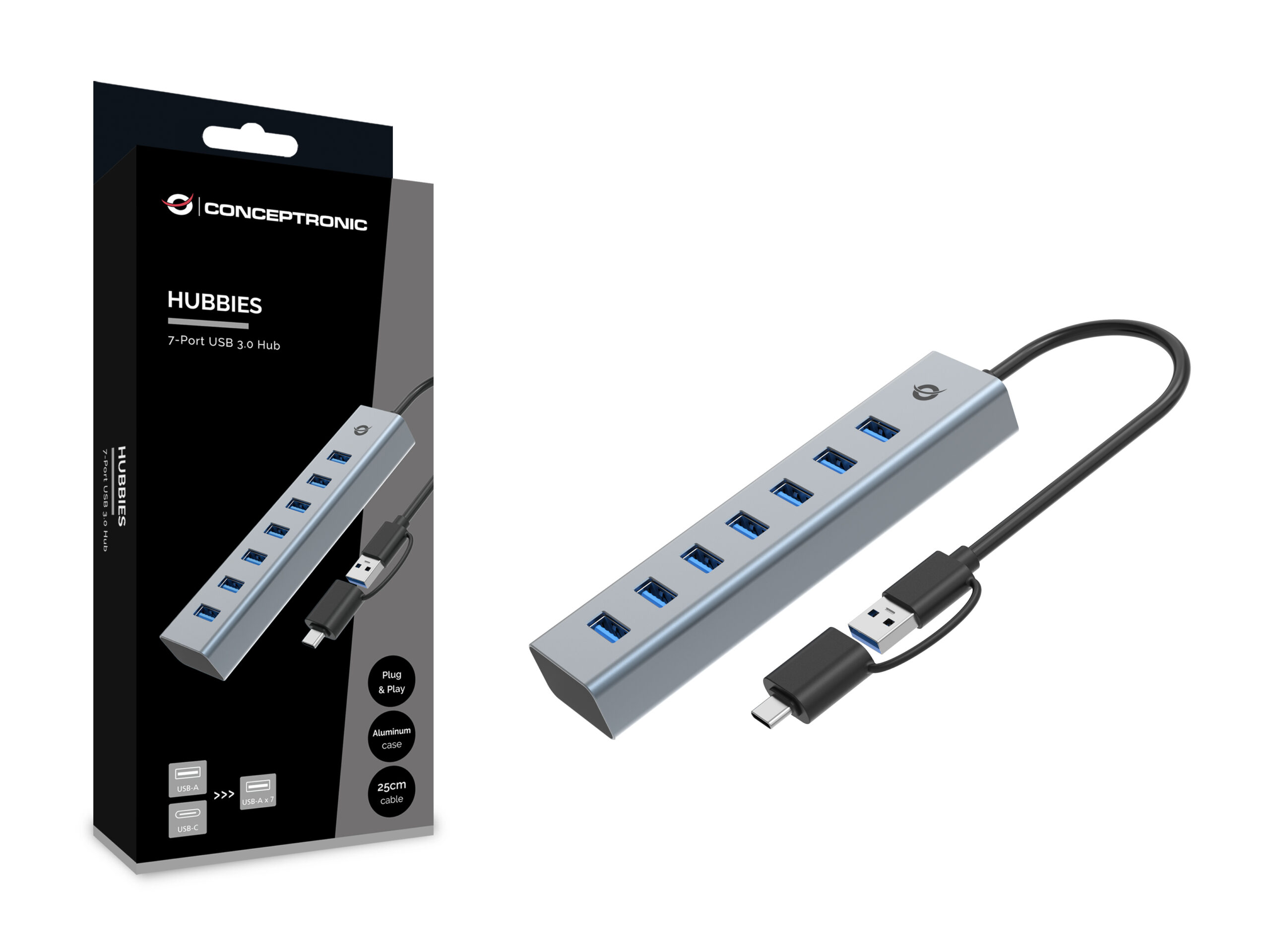 Hub CONCEPTRONIC USB-C 3.0 a 7xUSB-A GrisDisponibilidad: Hay existencias