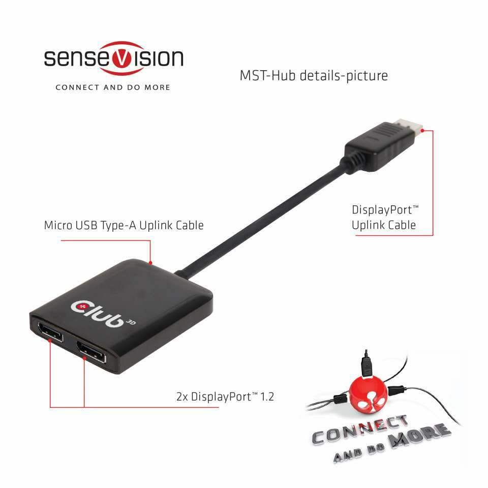 CLUB3D Multi Stream Transport Hub DisplayPort 1.2 Dual Monitor
