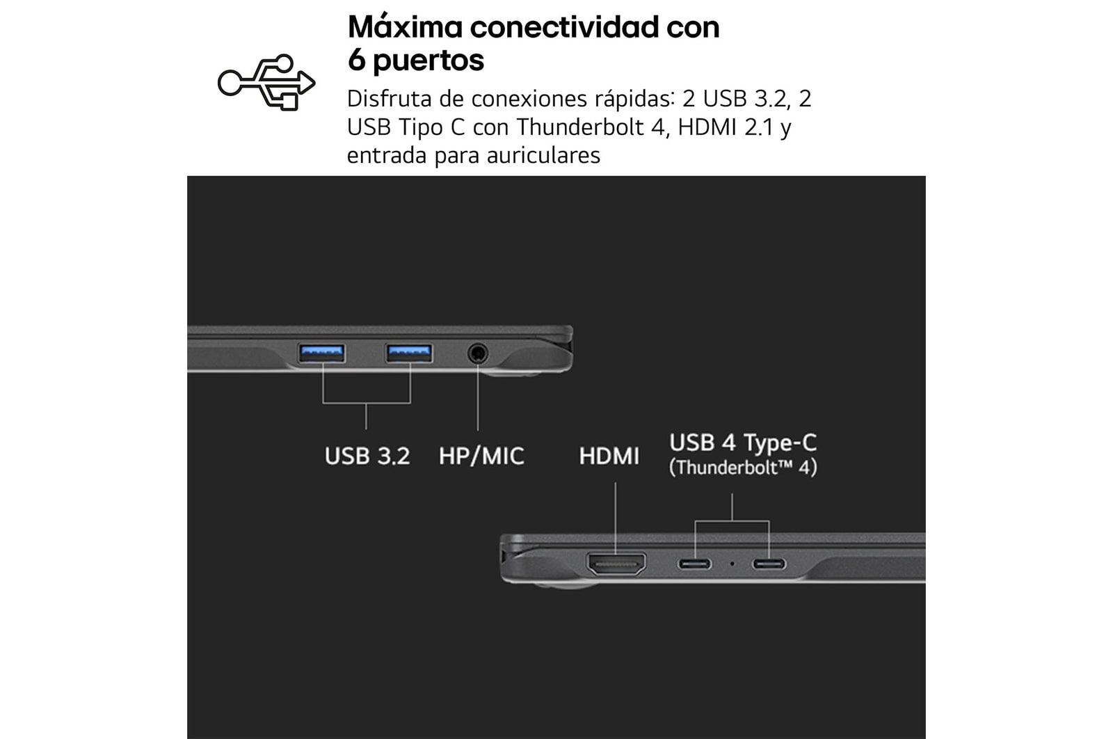 gram AISinergias entre tu dispositivo y la nubeGracias a la AI en el dispositivo (Chat On-Device) y en la nube (Chat Cloud), gram AI ofrece un rendimiento fluido e información personalizada donde quiera que estés. Trabaja de forma más inteligente, siéntete seguro y consigue más, estando conectado o desconectadoMicrosoft CopilotTu AI de confianza, un compañero para el día a díaConsigue respuestas reales basadas en Internet y genera imágenes con facilidad utilizando Copilot en Windows 11. Esta potente herramienta de AI aprovecha los recursos en línea para ofrecerte información precisa y actualizada adaptada a tus consultas. Con unos pocos clics, puedes obtener las respuestas que necesitas y crear imágenes personalizadas para mejorar tus proyectos.LigerezaCon solo 1.239 g de peso combinado con un grosor de 15,7 mm, LG gram se adapta libremente a cualquier estilo de vida. Diseñado para superar rigurosas pruebas militares, este diseño demuestra que la durabilidad y la elegancia pueden ir de la mano.Alta resolución WQXGA y amplia gama cromática DCI-P3 99%Detalles precisos, experiencia envolventeSumérgete en colores vivos con la resolución WQXGA y la amplia gama de colores DCI-P3 99%. LG gram da vida a tus ideas, añadiendo precisión y profundidad a cada imagen.Pantalla 16:10 de 16 pulgadasDisfruta de cada momento visualAumenta tu productividad con una visión más amplia. La pantalla de 16 pulgadas te ayuda a ver más cosas a la vez, lo que facilita las tareas. La relación de aspecto 16:10 te ofrece un campo visual más amplio, para que puedas desplazarte menos y centrarte más. Con una cobertura de color DCI-P3 del 99%, disfruta de detalles vibrantes y colores vivos e intensos.Pantalla antirreflejos Enfócate y ve más allá.Disfruta de una pantalla nítida y colorida sin preocuparte por los reflejos, incluso en entornos luminosos.Nacido para la AI, perfectamente emparejado con Intel® Lunar Lake El último procesador Intel® Core™ Ultra, que incorpora una Unidad de Procesamiento Neuronal (NPU) capaz de manejar hasta 47 Tera Operaciones por Segundo (TOPS) para tareas de IA, ahora está integrado en el LG gram, ofreciendo un rendimiento potente optimizado para portátiles. Con una innovadora eficiencia energética y el desempeño distintivo de un procesador dedicado a la IA, gestiona de manera eficiente tareas de inteligencia artificial y aprendizaje automático.Elige la CPU que más se adapte a tiSi buscas una portátil de alto rendimiento, echa un vistazo a nuestro modelo 16Z90T, que admite hasta 74 TOPS en la GPU.Multitarea fluida y rápidaObtén lo mejor de la AI y del procesador con memorias LPDDR5X para un manejo de datos rápido y SSD NVMe duales para un acceso rápido a tu almacenamiento.gram LinkConecta todos tus dispositivosLG gram Link permite conectar hasta 10 dispositivos a la vez, incluso iOS y Android. Comparte, colabora y crea con un espacio de trabajo conectado sin límites.Energía inteligente, desconecta y juegaCon una batería de alta capacidad de hasta 28,5 horas y nuestro asistente inteligente AI, gram se adapta a tu entorno y ofrece un rendimiento optimizado durante más horas. Aumenta tu productividad y disfruta de un juego sin interrupciones.Fácil conectividadConectividad sencilla e instantáneaConéctate con gram +view, dispositivos de almacenamiento de alta velocidad, monitores o dispositivos de última generación. Sus numerosos puertos lo convierten en un paraíso plug-and-play de mayor productividad y entretenimiento sin fin.