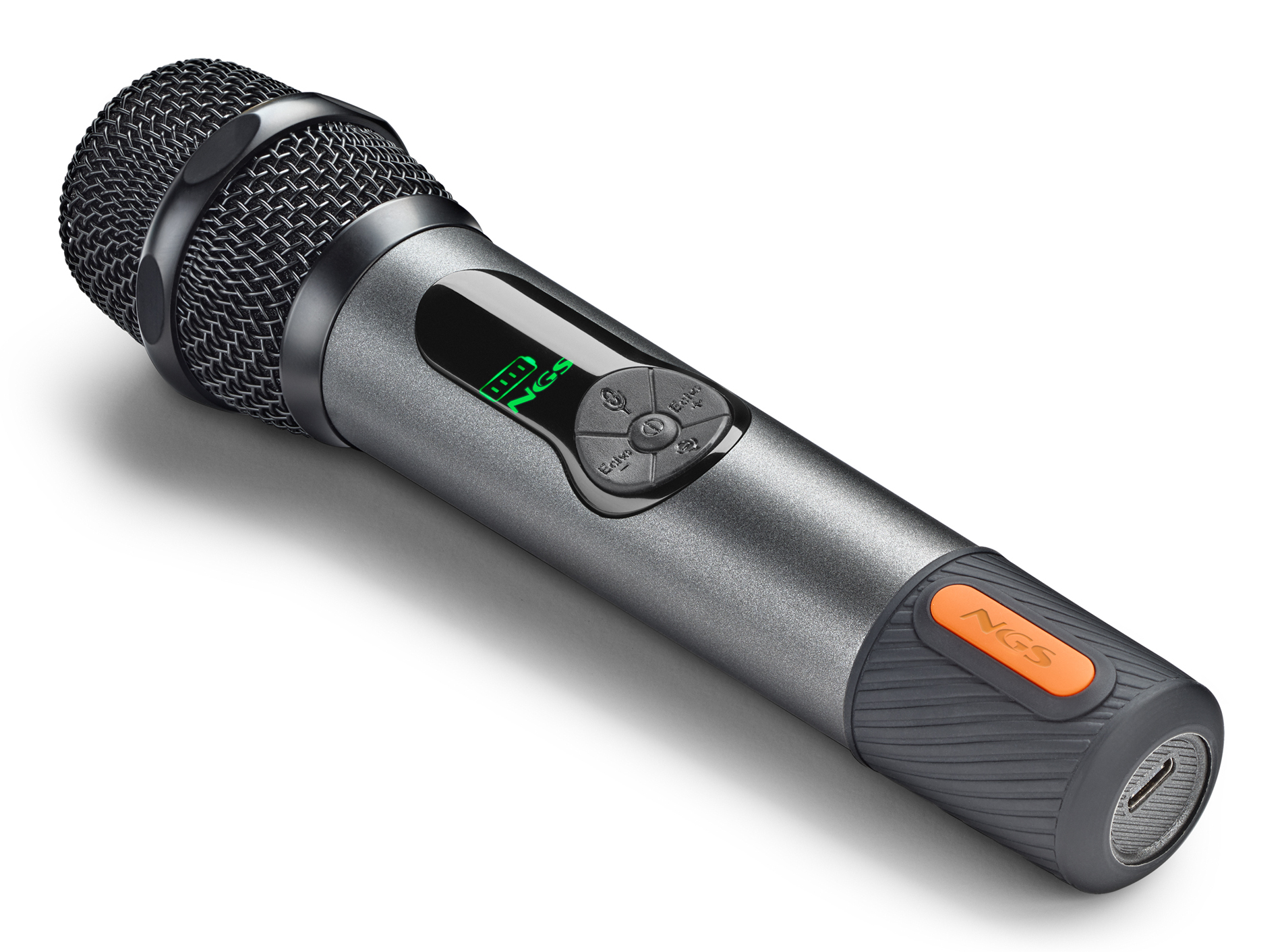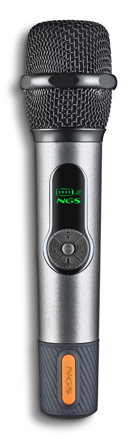 NGS SINGER STAR. Tipo: Micrófono vocal, Frecuencia de micrófono: 15 – 12000 Hz, Micrófono, relación señal/ruido: 86 dB. Tecnología de conectividad: Inalámbrico, Interfaz del dispositivo: RF, Distancia de funcionamiento máximo: 15 m. Color del producto: Negro. Fuente de energía: Batería, Tecnología de batería: Ión de litio, Capacidad de batería: 1500 mAh. Altura: 210 mm, Diámetro: 4,8 cm, Peso del micrófono: 210 g