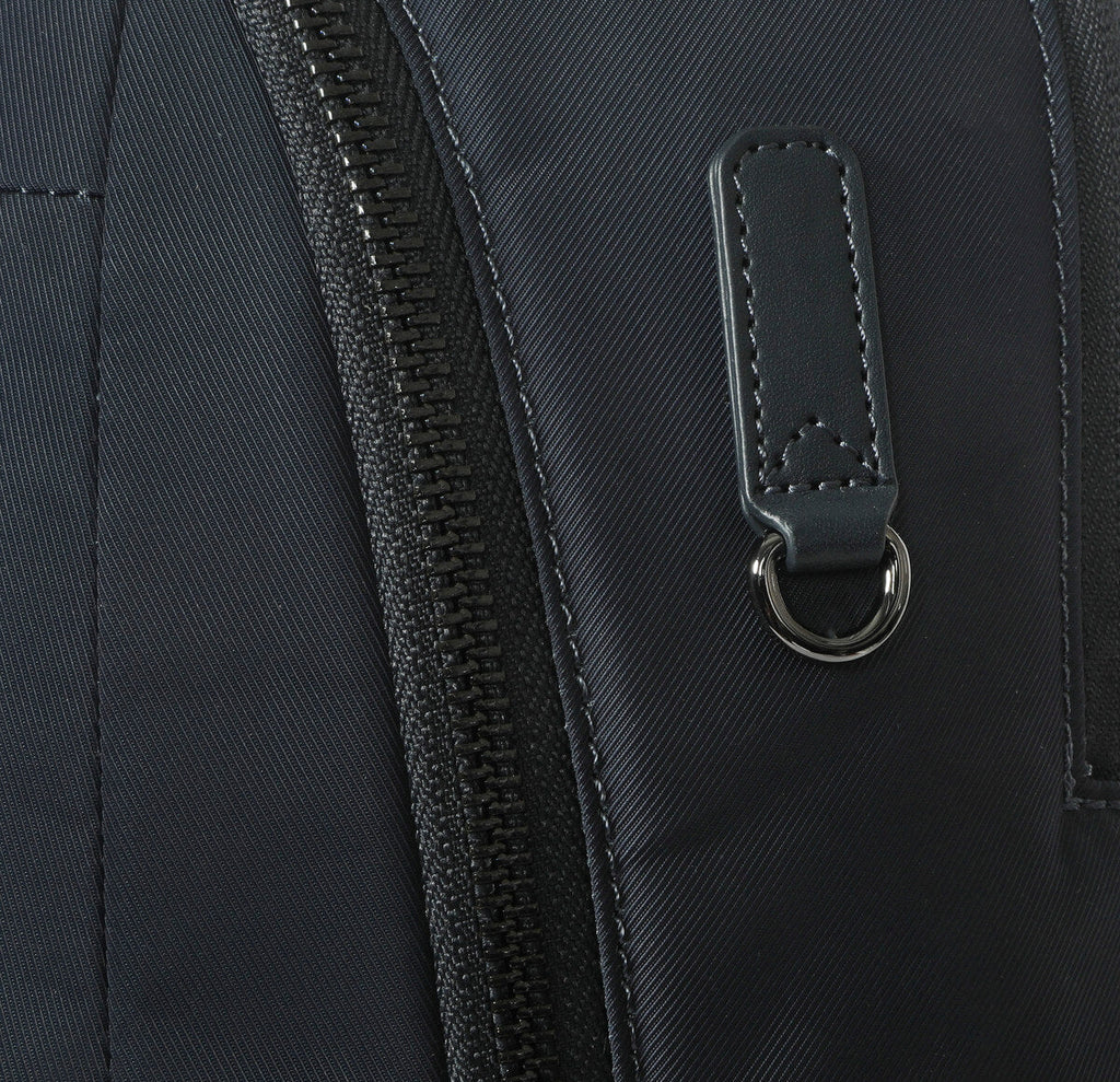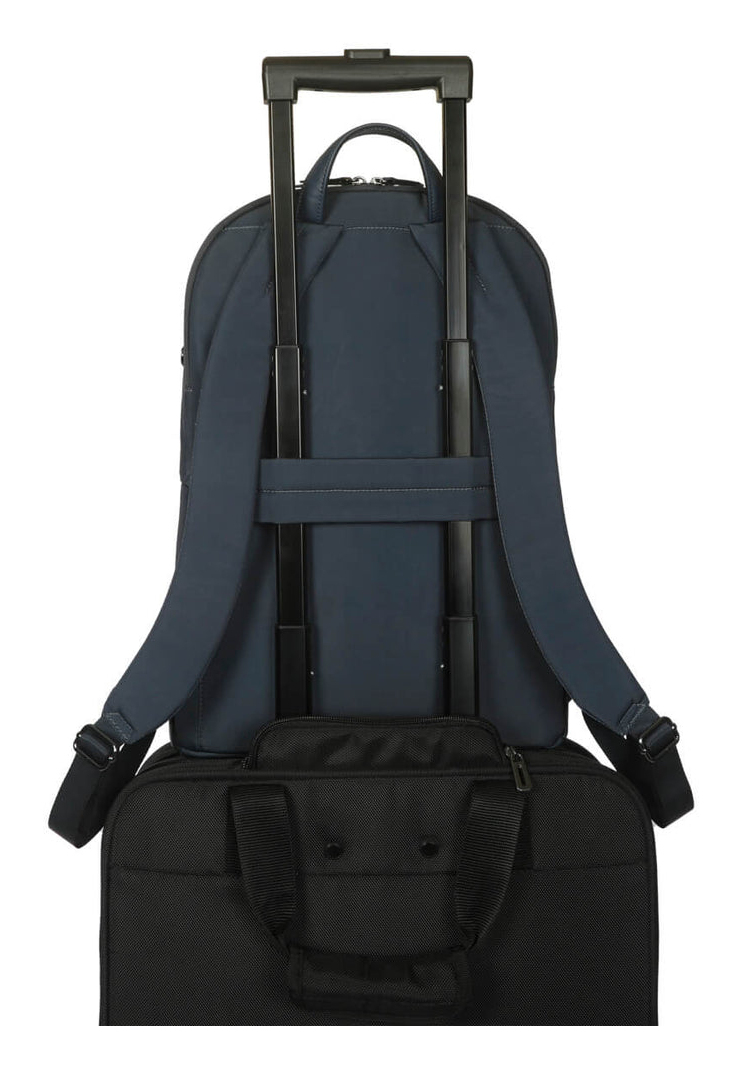 La mochila Avila de 15-16″ es perfecta para llevar a diario y atraer todas las miradas. La mochila Avila cuenta con un compartimento específico con cremallera para el portátil que mantiene tu tecnología segura, además de un compartimento principal secundario con multitud de bolsillos para una organización sin esfuerzo. Un bolsillo oculto en la parte posterior añade una capa de seguridad para tus objetos de valor, mientras que las correas acolchadas ajustables para los hombros te ofrecen comodidad incluso en los días más largos. Pero no todo es funcionalidad: la mochila Avila no escatima en estilo. Con sofisticados detalles en piel vegana, herrajes metálicos de primera calidad y un brillante forro interior que hace que encontrar tus objetos esenciales sea más fácil de lo que pensabas, esta mochila está diseñada para complementar tu estética personal a la vez que protege el planeta. Además, está fabricada con 14 botellas de agua recicladas, para que te sientas bien cada vez que la cojas.Proteja su patrimonioEnvuelva su portátil en una protección esencial y luzca bien mientras lo hace. Un compartimento específico para el portátil protege tus dispositivos. Para mayor comodidad y protección, la mochila Avila incluye un bolsillo oculto en el panel trasero para salvaguardar artículos importantes y privados.Se adapta a sus necesidadesCuando vayas en transporte público, puedes sujetar la mochila por el asa superior para liberar espacio y tener una mayor sensación de seguridad. Pero cuando estés explorando las vistas de una nueva ciudad o maniobrando por calles concurridas, lleva la mochila al hombro para llevarla sin manos. Para los viajeros frecuentes, puede engancharse fácilmente al equipaje rodante con una correa de equipaje para llevarla sin peso.Se adapta a cualquier estiloConfeccionada con esmero, eleva tu estilo a la vez que resiste las exigencias de tus aventuras diarias. El tejido impermeable no solo garantiza la seguridad de tus pertenencias, sino que también te da la tranquilidad de enfrentarte a cualquier condición meteorológica. Y no nos olvidemos de los elegantes detalles en piel vegana y los herrajes metálicos que añaden un toque de sofisticación a la vez que proporcionan una durabilidad extra.La botella renaceYa no tienes que elegir entre buena apariencia y diseño ecológico. Esta mochila EcoSmart® se ha diseñado pensando en el medio ambiente. Al utilizar materiales reciclados con certificación GRS, se evitó que 14 botellas de plástico llegaran a nuestros cursos de agua y vertederos. Este material se trituró, se hiló y se cosió en el tejido de esta mochila ecológica para portátil.