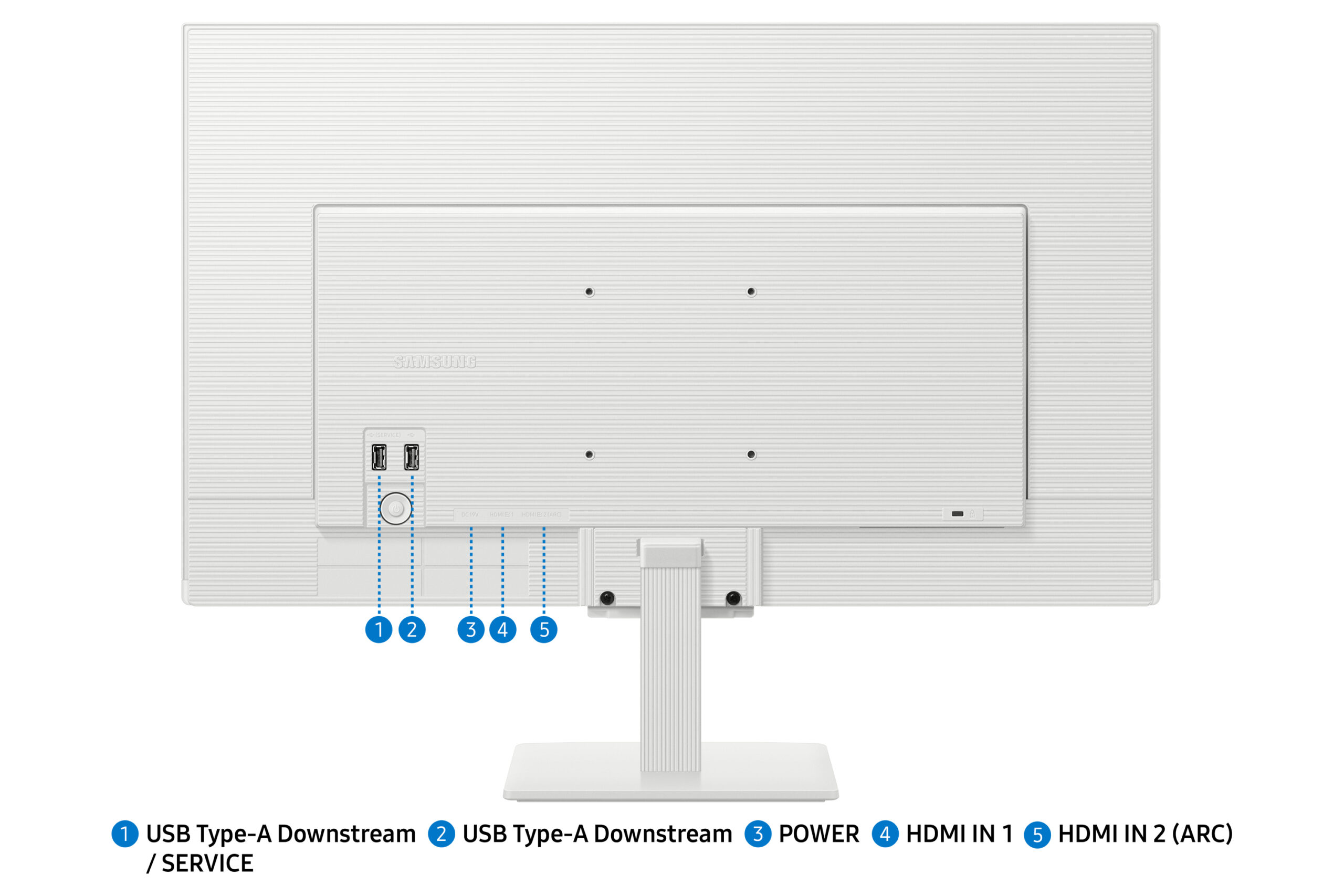 Samsung M50F. Diagonal de la pantalla: 68,6 cm (27″), Resolución de la pantalla: 1920 x 1080 Pixeles, Tipo HD: Full HD, Tecnología de visualización: LCD, Tiempo de respuesta: 5 ms, Relación de aspecto nativa: 16:9, Ángulo de visión, horizontal: 178°, Ángulo de visión, vertical: 178°. Altavoces incorporados. Conector USB incorporado. montaje VESA. Color del producto: Blanco