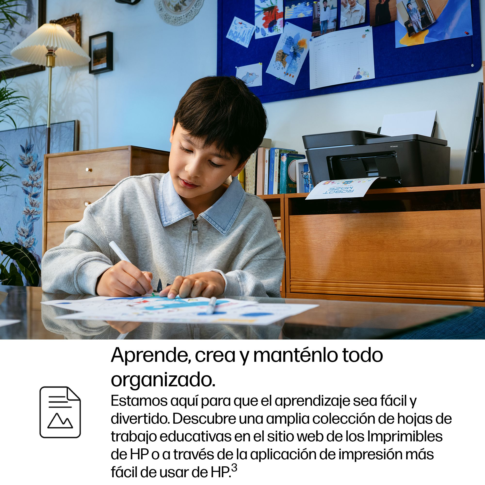Imprimir desde casa resulta ahora muy sencillo Imprime, escanea y copia sin esfuerzo con esta impresora doméstica compacta, inalámbrica y fácil de usar que dispone de un alimentador automático de documentos. Imprímelo todo, desde etiquetas de devolución hasta divertidas y coloridas hojas de trabajo de aprendizaje.[3]. Apto para HP Instant InkImpresora con seguridad dinámica habilitada Algunas impresoras HP están diseñadas para funcionar únicamente con cartuchos que dispongan de chips o circuitos electrónicos de HP nuevos o reutilizados. Estas impresoras utilizan medidas de seguridad dinámica para bloquear los cartuchos que usan chips o circuitos electrónicos que no sean de HP. Las actualizaciones periódicas de firmware mantienen la eficacia de estas medidas y bloquean los cartuchos que anteriormente funcionaban. Los chips y circuitos electrónicos de HP reutilizados permiten el uso de cartuchos reutilizados, rellenados o reacondicionados.