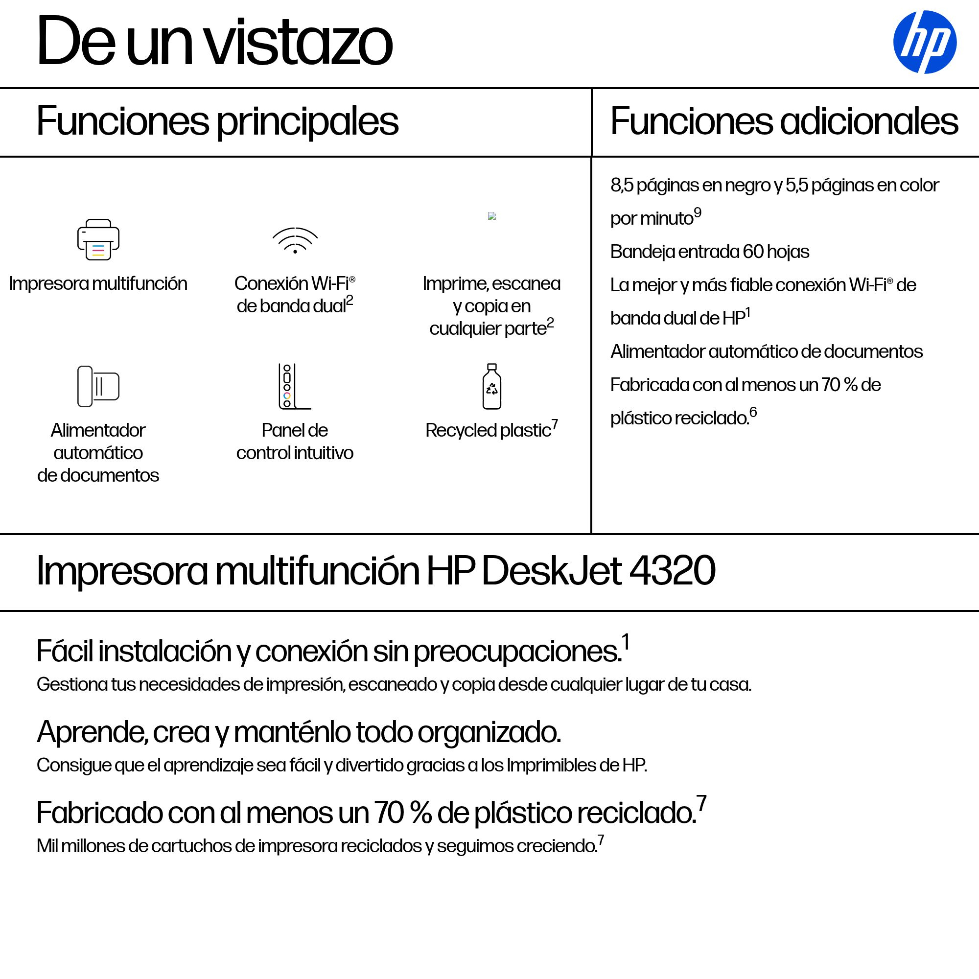 Multif HP Deskjet 4320 A4 Color ADF WiFi NegraDisponibilidad: Hay existencias