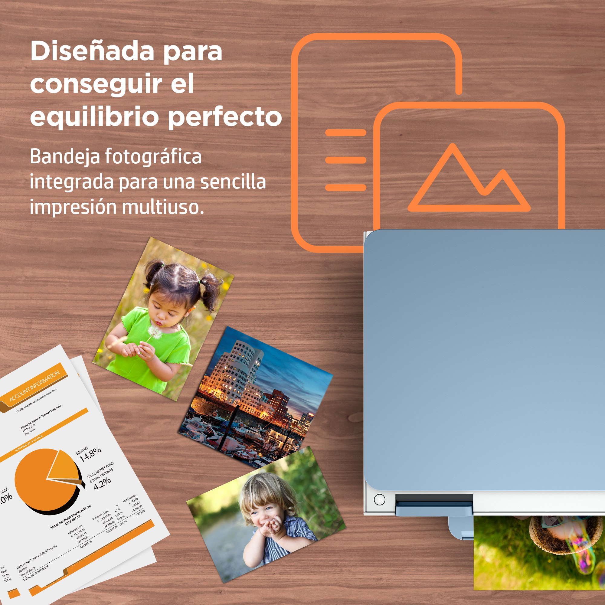 Todo lo que necesitas en una impresora doméstica. Trabaja, estudia y crea con una impresora capaz de imprimirlo todo (desde fotografías de alta calidad hasta documentos), que te permitirá abordar cualquier tarea. Elige HP+ y disfruta de una solución de impresión inteligente que te mantendrá conectado y preparado para imprimir desde prácticamente cualquier parte[1]. Apto para HP Instant InkImpresora con seguridad dinámica habilitada Algunas impresoras HP están diseñadas para funcionar únicamente con cartuchos que dispongan de chips o circuitos electrónicos de HP nuevos o reutilizados. Estas impresoras utilizan medidas de seguridad dinámica para bloquear los cartuchos que usan chips o circuitos electrónicos que no sean de HP. Las actualizaciones periódicas de firmware mantienen la eficacia de estas medidas y bloquean los cartuchos que anteriormente funcionaban. Los chips y circuitos electrónicos de HP reutilizados permiten el uso de cartuchos reutilizados, rellenados o reacondicionados.Esta es una impresora habilitada para HP+. Elige HP+ en la configuración del producto para activar las ventajas. HP+ requiere una cuenta HP, una conexión permanente a Internet y el uso exclusivo de cartuchos de Tinta Originales HP durante la vida útil de la impresora. Más información: http://www.hp.com/plus