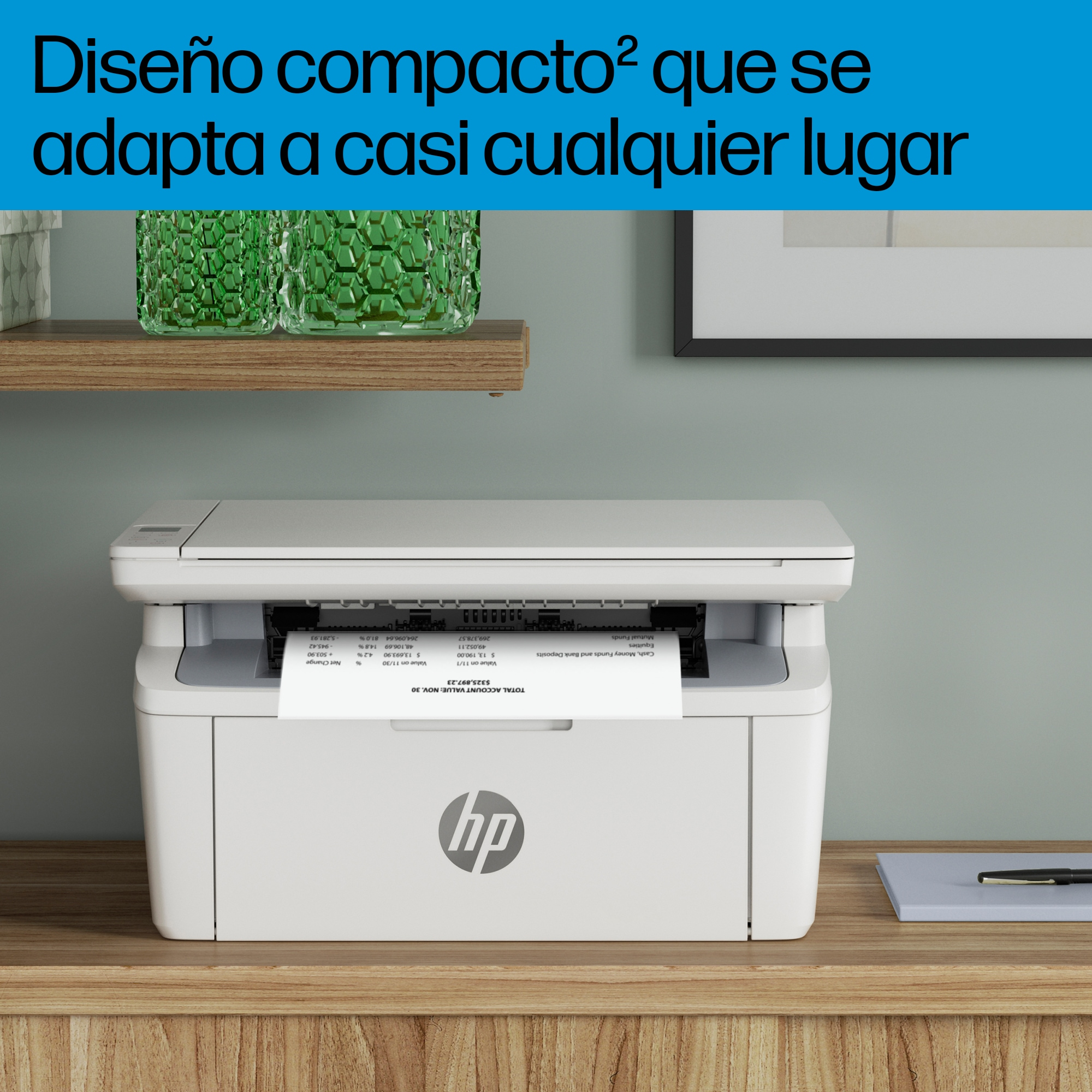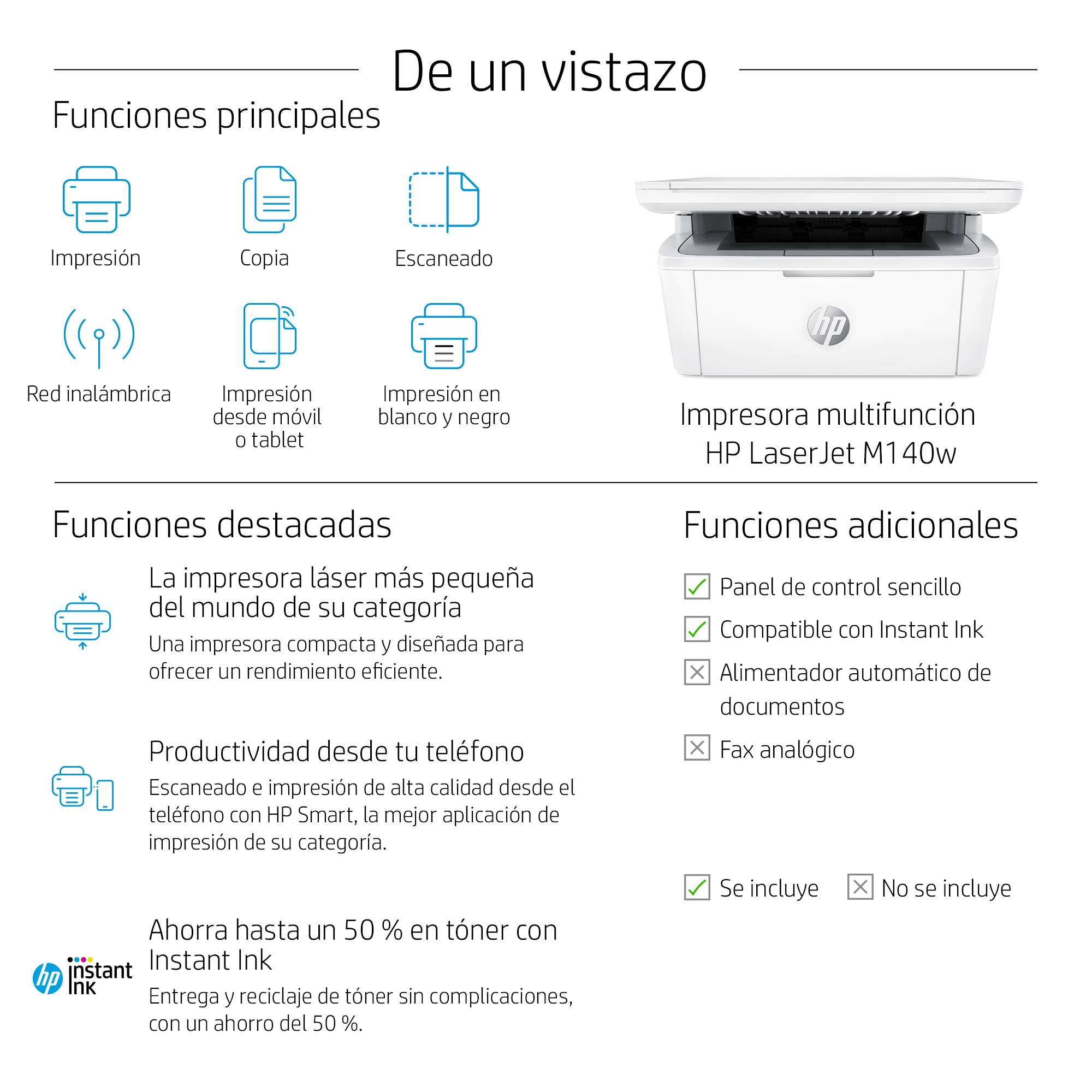 Trabaja de forma eficiente. Cabe en todas partes. Una impresora multifunción eficiente y de gran calidad que se adapta a tu espacio y presupuesto. Obtén una impresión rápida con la impresora láser más pequeña del mundo de su categoría, así como un gran ahorro de tiempo gracias a la aplicación HP Smart.[1,2] Disfruta de una impresión láser de calidad profesional y configuración sencilla.Impresora con seguridad dinámica habilitada Algunas impresoras HP están diseñadas para funcionar únicamente con cartuchos que dispongan de chips o circuitos electrónicos de HP nuevos o reutilizados. Estas impresoras utilizan medidas de seguridad dinámica para bloquear los cartuchos que usan chips o circuitos electrónicos que no sean de HP. Las actualizaciones periódicas de firmware mantienen la eficacia de estas medidas y bloquean los cartuchos que anteriormente funcionaban. Los chips y circuitos electrónicos de HP reutilizados permiten el uso de cartuchos reutilizados, rellenados o reacondicionados.