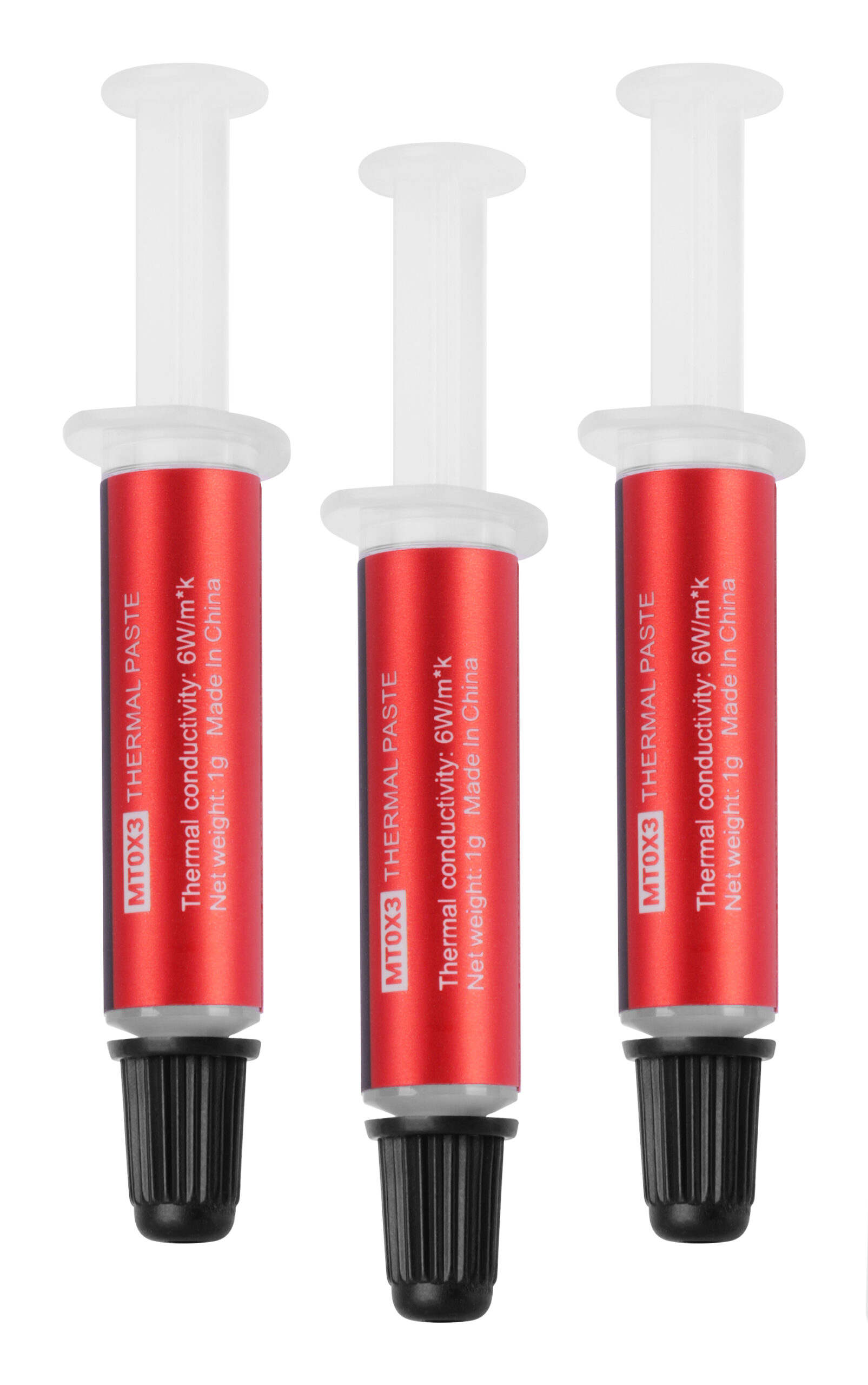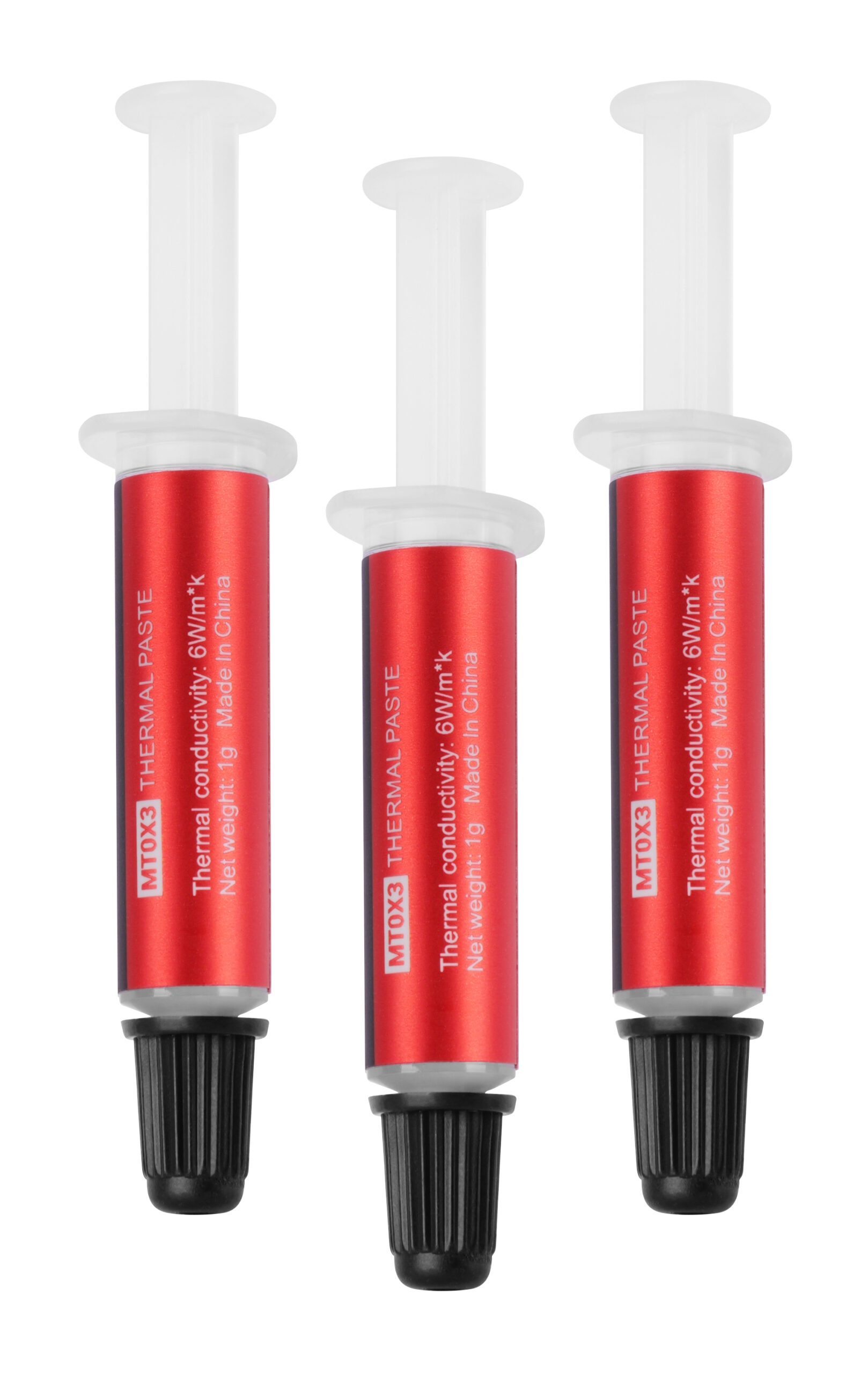 Pasta térmica MT0X3Optimiza la refrigeración de tu CPU, GPU o cualquier componente clave con el kit de 3 pastas térmicas MT0X3. Diseñado para ofrecer un rendimiento térmico superior, su fórmula profesional garantiza una disipación eficiente del calor, aplicación precisa y sin residuos, y máxima seguridad para tu equipo. Consigue temperaturas estables incluso en los escenarios más exigentes y saca el máximo partido a tu procesador.Refrigeración precisa, rendimiento extremo- Alta conductividad térmica de 6W/m·K- Soporta hasta 280 °C sin evaporación ni pérdida de propiedades.- Aplicación fácil y uniforme con espátula y aplicador- Fórmula no conductiva con nanotecnología seguraMáxima eficiencia térmicaCon una conductividad térmica de 6W/m·K, la pasta térmica MT0X3 permite una disipación de calor eficiente desde el procesador o la GPU hacia el sistema de refrigeración. Esto se traduce en una reducción efectiva de temperaturas, mayor estabilidad y una mejora notable del rendimiento general de tu PC, incluso durante sesiones intensas.Preparado para temperaturas extremasEste kit de pasta térmica profesional está diseñado para resistir condiciones extremas, soportando hasta 280 °C sin evaporarse ni degradarse. Gracias a su alta durabilidad, ofrece un rendimiento consistente y prolongado, ideal para quienes buscan fiabilidad en cada instalación.Fácil AplicaciónLa pasta térmica MT0X3 destaca por su viscosidad perfectamente equilibrada, que facilita una aplicación precisa, limpia y sin residuos. Cada unidad viene en una práctica jeringa con tapón de seguridad, ideal para conservar la pasta en perfecto estado tras cada uso. Tanto si eres principiante como usuario avanzado, lograrás una cobertura perfecta gracias a la espátula y el aplicador incluidos, diseñados para extender la pasta térmica de forma uniforme sobre la superficie del procesador.Seguridad garantizadaLa fórmula del MT0X3 utiliza nanotecnología no conductiva, lo que elimina el riesgo de cortocircuitos o daños accidentales en componentes sensibles, y garantiza una instalación segura y lo convierte en la opción ideal para builds profesionales o tareas de mantenimiento.Tres unidades, triple valorEl kit incluye 3 unidades, perfecto para múltiples montajes, actualizaciones o para tener siempre a mano en tu estación de trabajo.