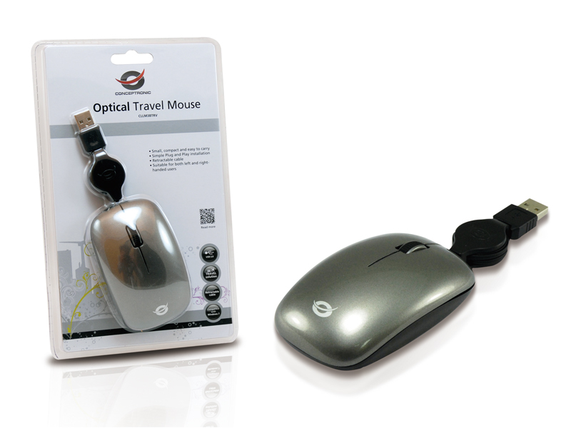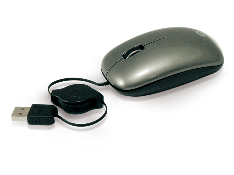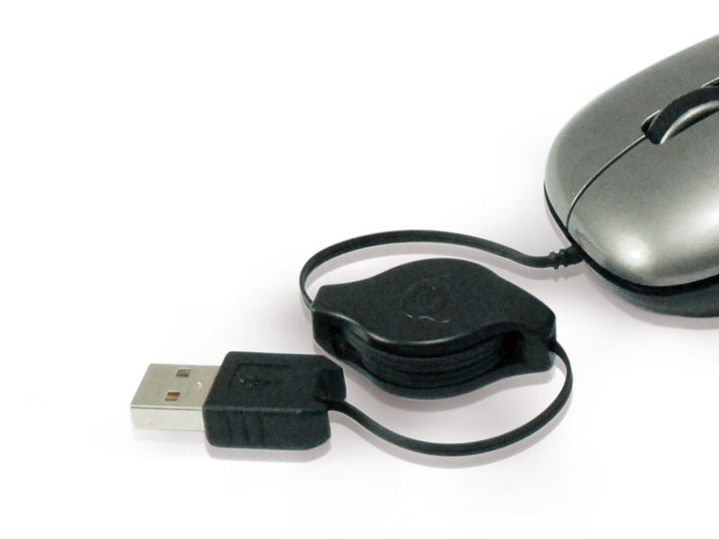 Este ratón óptico de viaje tiene un diseño plano y moderno. Cuenta con 3 botones e incluye una suave rueda de desplazamiento para poder navegar de forma rápida y fácil a través de la web o sus documentos. Tiene dimensiones reducidas de viaje y un cable retráctil que lo hace ideal para llevarlo a todas partes.