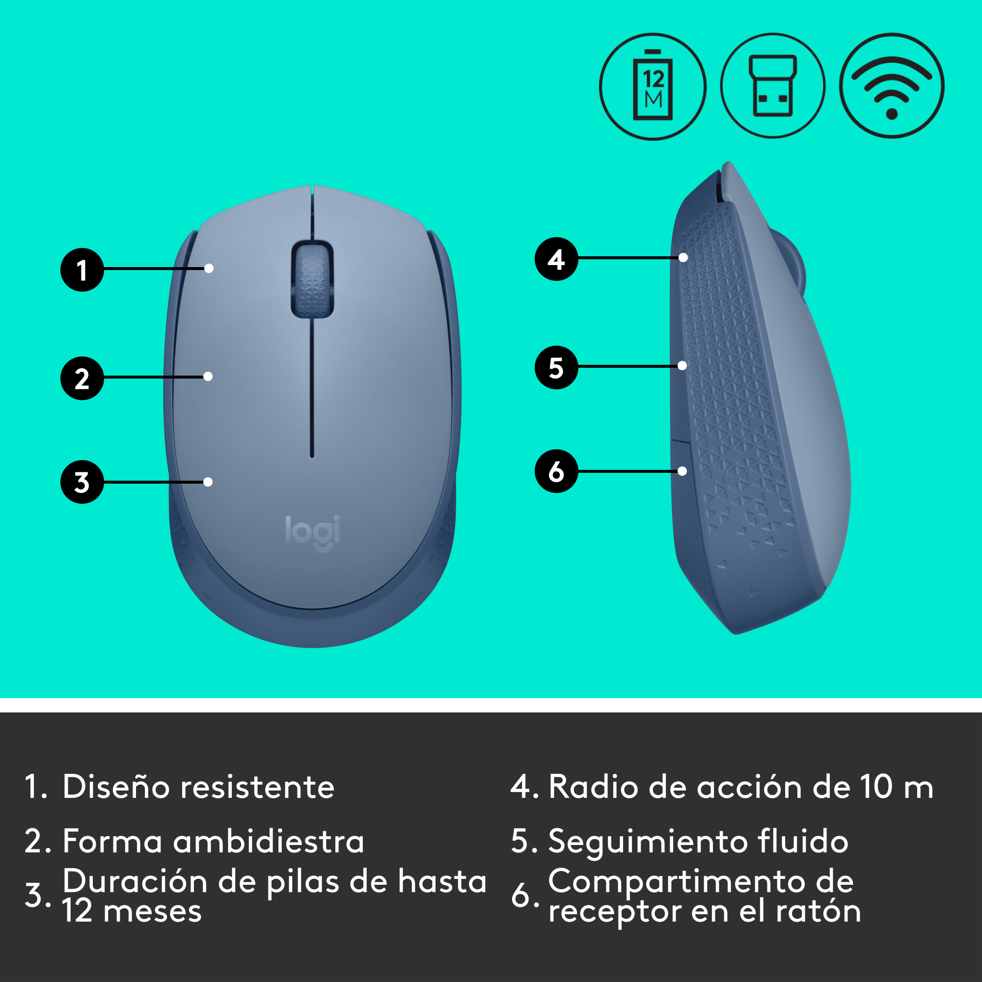 AHORA ES INALÁMBRICO. Con el ratón inalámbrico Logitech® M171 tienes la fiabilidad de la tecnología con cable y la comodidad de la tecnología inalámbrica, y un radio de acción de 10 metros (33 ft) gracias a la tecnología inalámbrica avanzada de 2,4 GHz de Logitech. Este asequible y sencillo ratón funciona durante 12 meses con una sola pila AA y es compatible con Windows®, Mac y Chrome™.La duración de las pilas/baterías depende del uso.