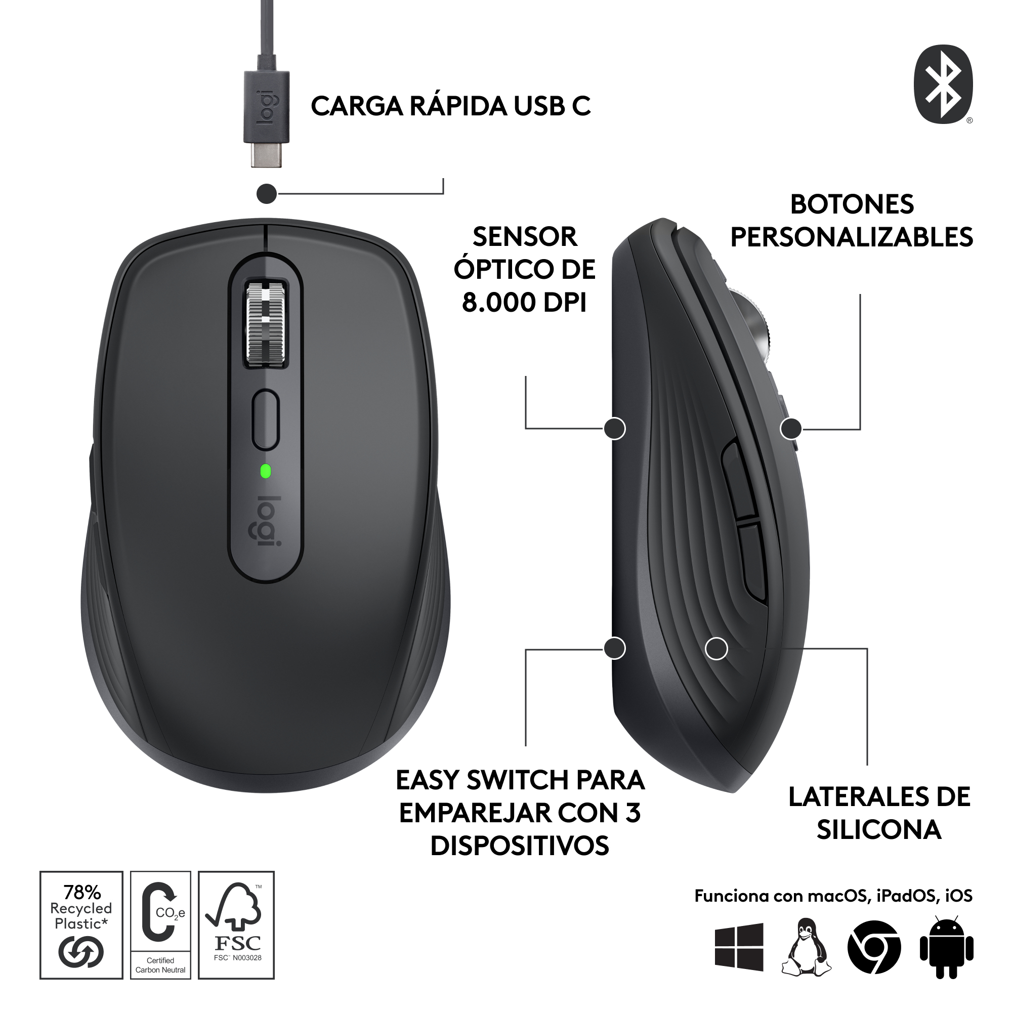 Ratón LOGITECH MX Anywhere 3S RF BT NegroDisponibilidad: Hay existencias