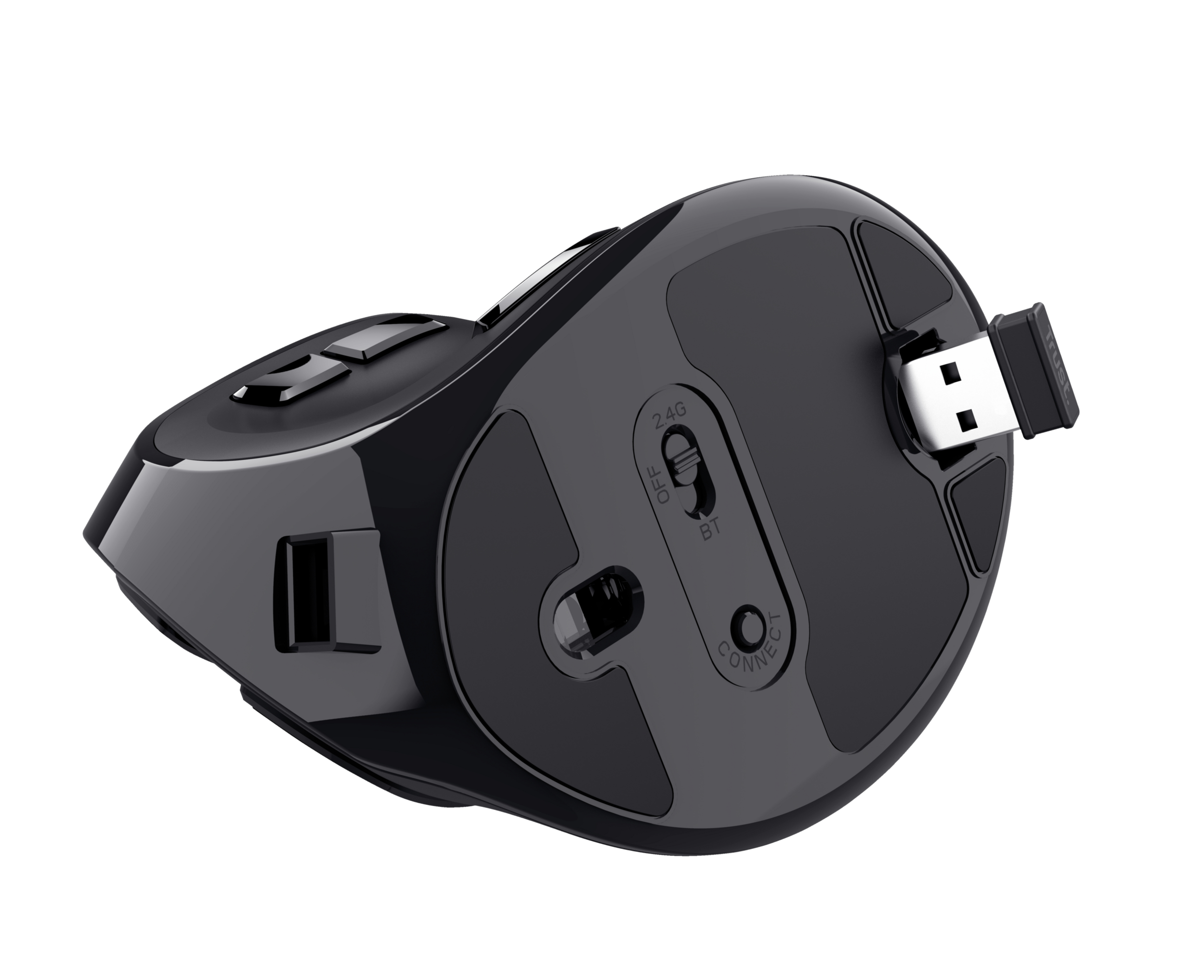 Sin tensiónSu diseño vertical y ergonómico permite colocar la mano en una posición más natural, con lo cual se evita o reduce la tensión de la muñeca y el brazo.Adiós cablesFunciona de manera inalámbrica a través de un receptor USB o Bluetooth que proporciona todo el espacio necesario para trabajar sin líos de cables.A la cargaSin necesidad de baterías desechables. La batería se puede conectar y recargar fácilmente cuando la pantalla LED muestra que está casi agotada. Además, un interruptor de encendido/apagado de bajo consumo ayuda a conservar la vida útil de la batería.Botones y más botonesNueve botones en total, de los cuales 5 son programables. Las manos no se aburren y la experiencia de usuario se personaliza al máximo.Toda la informaciónPara conocer todos los detalles y tener un control total, una pantalla LED muestra las funciones de los botones, las ppp, el estado de conexión y la carga restante de la batería .