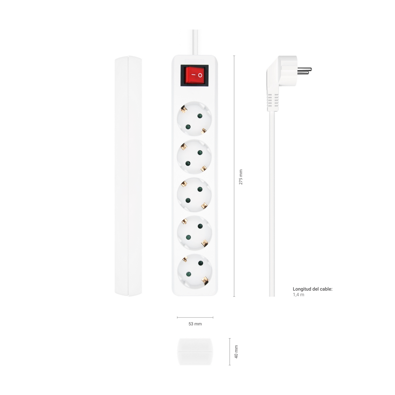 AISENS Base Multiple 5 Tomas con Interruptor con Cable 3×1.5mm2, Blanco, 1.4 m