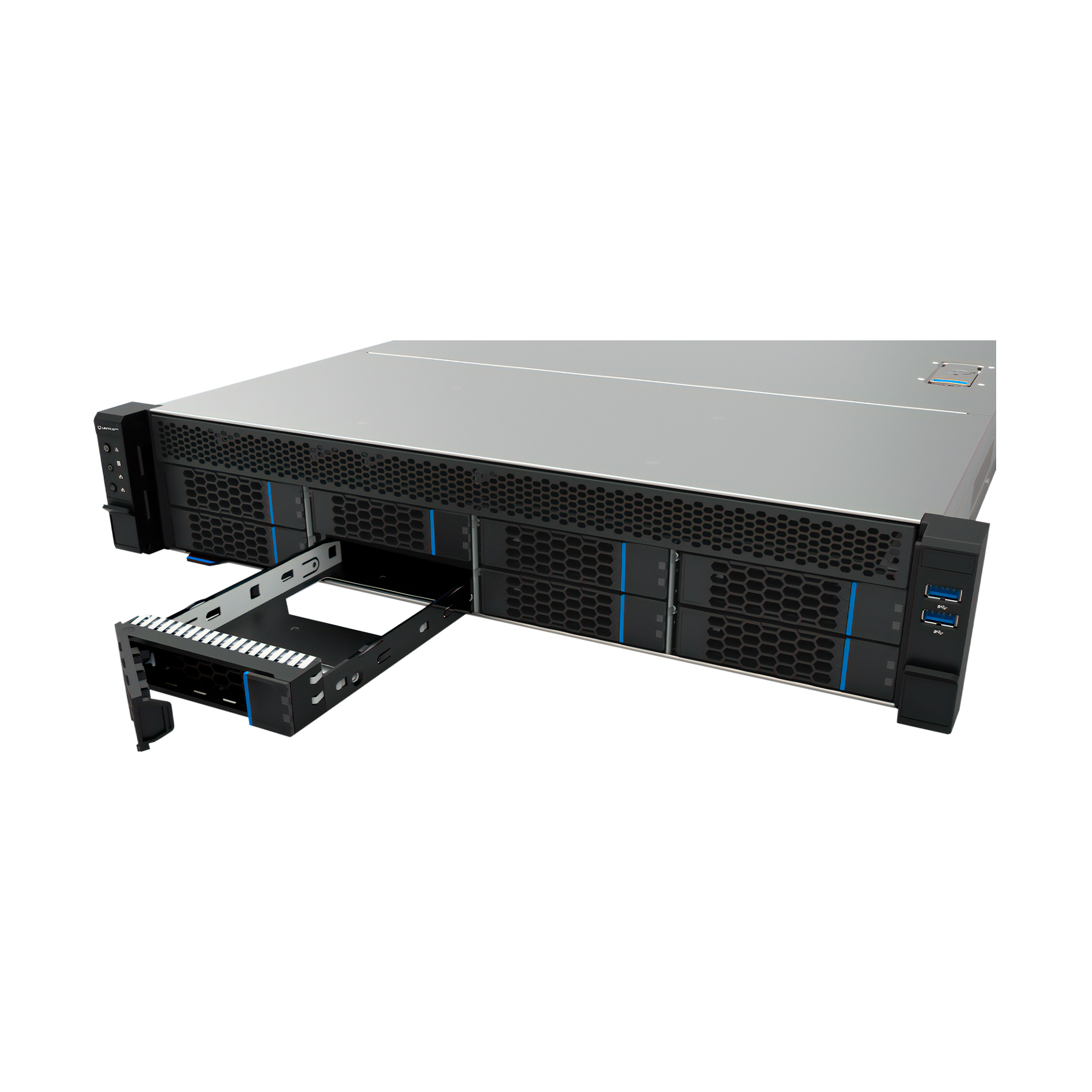El Servidor Rack Hot Swap 2U HSW4208 G3, perteneciente a UNYKA Pro, es una solución de alto rendimiento que combina potencia y flexibilidad en un chasis compacto. Este servidor ofrece capacidades de hot swap, lo que permite intercambiar unidades de disco duro SAS y SATA3.0 en caliente, sin necesidad de apagar el sistema. Con capacidad para hasta 8 unidades de 3,5″ o 2,5″, proporciona un amplio espacio de almacenamiento para satisfacer las necesidades de datos en entornos empresariales exigentes.Además de su destacada capacidad de almacenamiento, el servidor cuenta con un sistema de refrigeración avanzado que incluye 4 ventiladores intercambiables en caliente modelo 8038. Estos ventiladores garantizan un flujo de aire eficiente y un control de temperatura adecuado para mantener el sistema funcionando de manera estable y confiable.El Servidor Rack Hot Swap 2U HSW4208 G3 ofrece amplias opciones de expansión, con 7 ranuras de expansión estándar de media altura y opcionalmente 3 ranuras de expansión horizontal a altura completa. Esto permite agregar tarjetas adicionales y personalizar el servidor según las necesidades específicas de cada empresa, brindando una mayor versatilidad y capacidad de adaptación.En términos de fiabilidad y disponibilidad, el servidor es compatible tanto con una sola fuente de alimentación como con redundantes, lo que garantiza la continuidad del servicio y la protección de los datos en caso de fallos. Además, cuenta con la función UID (Identificación Única), que simplifica la gestión y localización del servidor en entornos con múltiples dispositivos, mejorando la eficiencia operativa y facilitando su mantenimiento.Este chasis de 2U está fabricado con grosor de 1,2 mm por lo que ofrece una buena resistencia, rigidez y rendimiento.