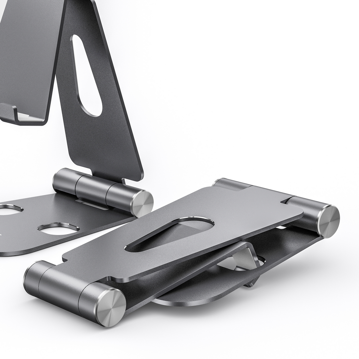 Soporte de sobremesa ajustable de tamaño XL para teléfono móvil o Tablet.Este soporte mejorado cuenta con un cuerpo de aleación de aluminio refinado que garantiza la máxima durabilidad y estabilidad.Este soporte para teléfono móvil es totalmente plegable y súper compacto. Se puede guardar fácilmente en una mochila, bolso o maleta cuando viaja y ahorra espacio.Ofrece un ángulo de visión perfecto para vídeo conferencia, ver vídeos etc. Puede colocarlo en su escritorio, mesita de noche y mesa de trabajo en casa o en la oficina.Las patas de silicona antideslizantes protegen su dispositivo de posibles arañazos y deslizamientos, y las almohadillas antideslizantes inferiores evitan que el soporte se deslice en la mayoría de las superficies resbaladizas.Un gran orificio en la parte posterior está diseñado para que pase un cable de carga, perfecto para cargar sus dispositivos inteligentes y mantener su escritorio organizado.Este soporte de gran tamaño funciona perfectamente con la mayoría de los dispositivos inteligentes de hasta 11 pulgadas, como su teléfono móvil o tablet de apple, samsung, xiaomi etc.