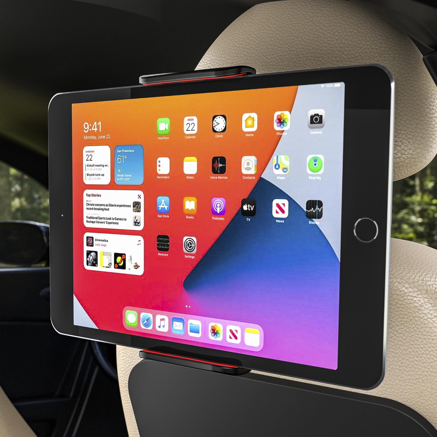 Soporte de coche ajustable para reposacabezas para teléfono móvil o Tablet.Este soporte está especialmente diseñado para el reposacabezas del automóvil, permite que los pasajeros del asiento trasero se entretengan durante el viaje. Ideal para ver películas, leer libros electrónicos, jugar video juegos etc.Este soporte funciona perfectamente con la mayoría de los dispositivos inteligentes de entre 5 a 12 pulgadas, como su teléfono móvil o tablet de apple, samsung, xiaomi etc.Este soporte mejorado cuenta con un cuerpo de aleación de aluminio refinado que garantiza la máxima durabilidad y estabilidad.La instalación de este soporte en la reposacabezas no puede ser más sensillo. Equipado con un sistema rápido de fijación para reposacabezas con distancia de columnas entre 10,5cm a 14,5cm.El soporte para tablet del reposacabezas del automóvil tiene una conexión de bola giratoria para una rotación de (360) grados, por lo tanto es muy cómodo para inclinar o girar el soporte con el fin de obtener un ángulo de visión perfecto.El soporte para dispositivo se puede extender fácilmente de 12 cm a 21 cm para ajustarse a la mayoría de los dispositivos inteligentes.Orificio en la parte lateral del soporte está diseñado para que pase un cable de carga, perfecto para cargar sus dispositivos inteligentes.
