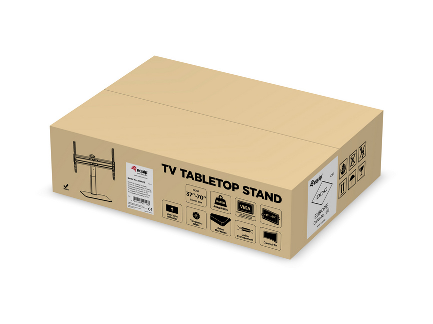 «El soporte de sobremesa para TV/LCD equip® 650612 de altura regulable es un producto compacto pero robusto que garantiza una instalación fiable de su monitor de TV. No requiere agujeros ni un montaje complicado, se monta rápidamente. La gestión de cables permite que los cables permanezcan ocultos para una pantalla de mejor aspecto. Este soporte de TV es la opción ideal como gran funcionalidad»