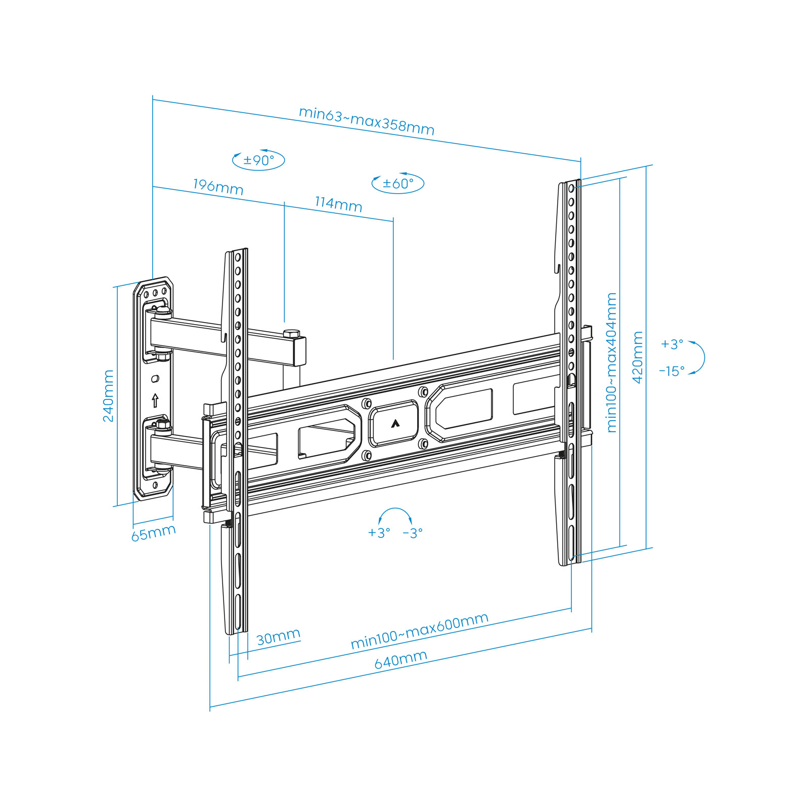 ¡Este soporte será imprescindible para ti! Fija tu pantalla a la pared y gana espacio. Tiene una capacidad de carga de 35 kg y un diseño elegante en color negro. ¡Disfruta de una instalación limpia y ordenada!