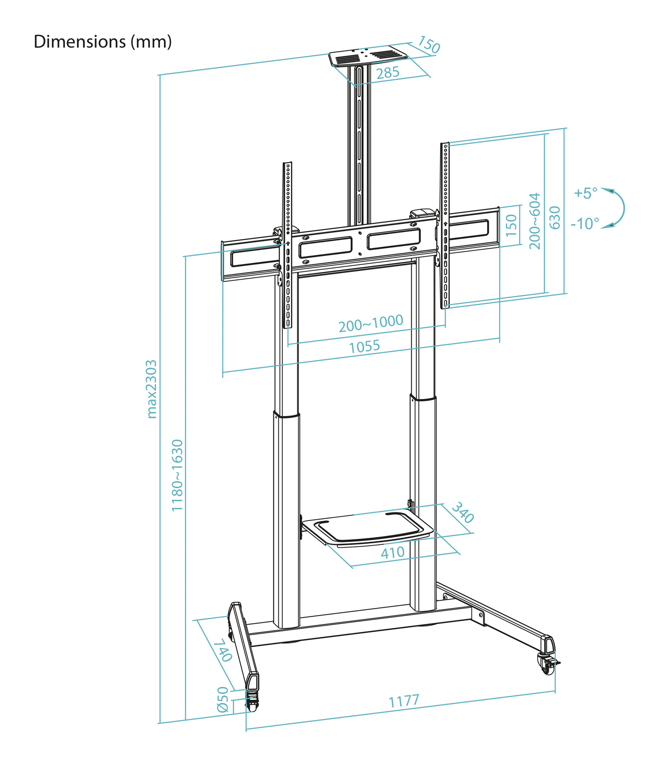 Soporte de Suelo TooQ 60"-100" con RuedasSoporte de Suelo TooQ 60″-100″ con Ruedas