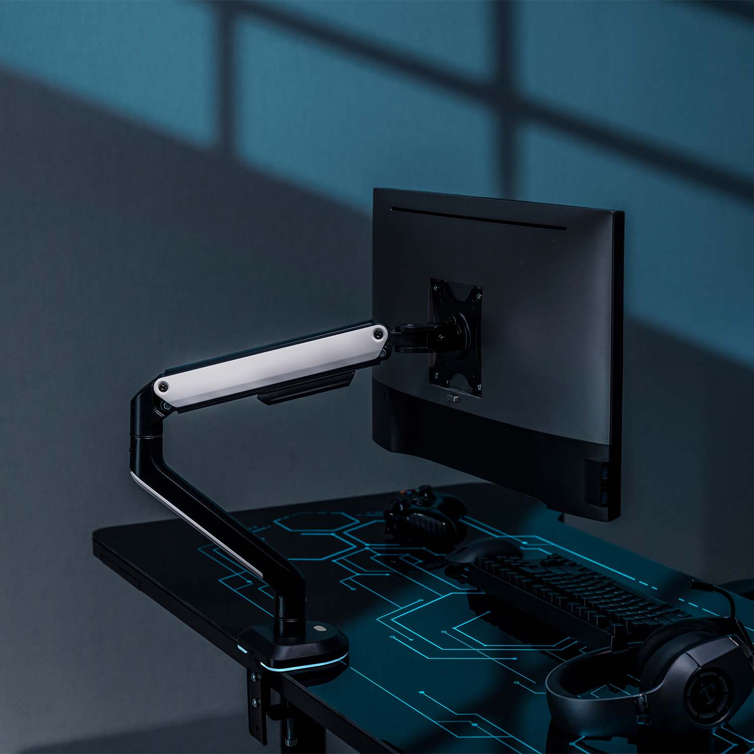 AISENS Soporte De Mesa RGB Gaming Contrapeso Giratorio E Inclinable Para Monitor/TV 9kg (3 Pivotes, 1 Brazo) De 17-32, Negro-Blanco