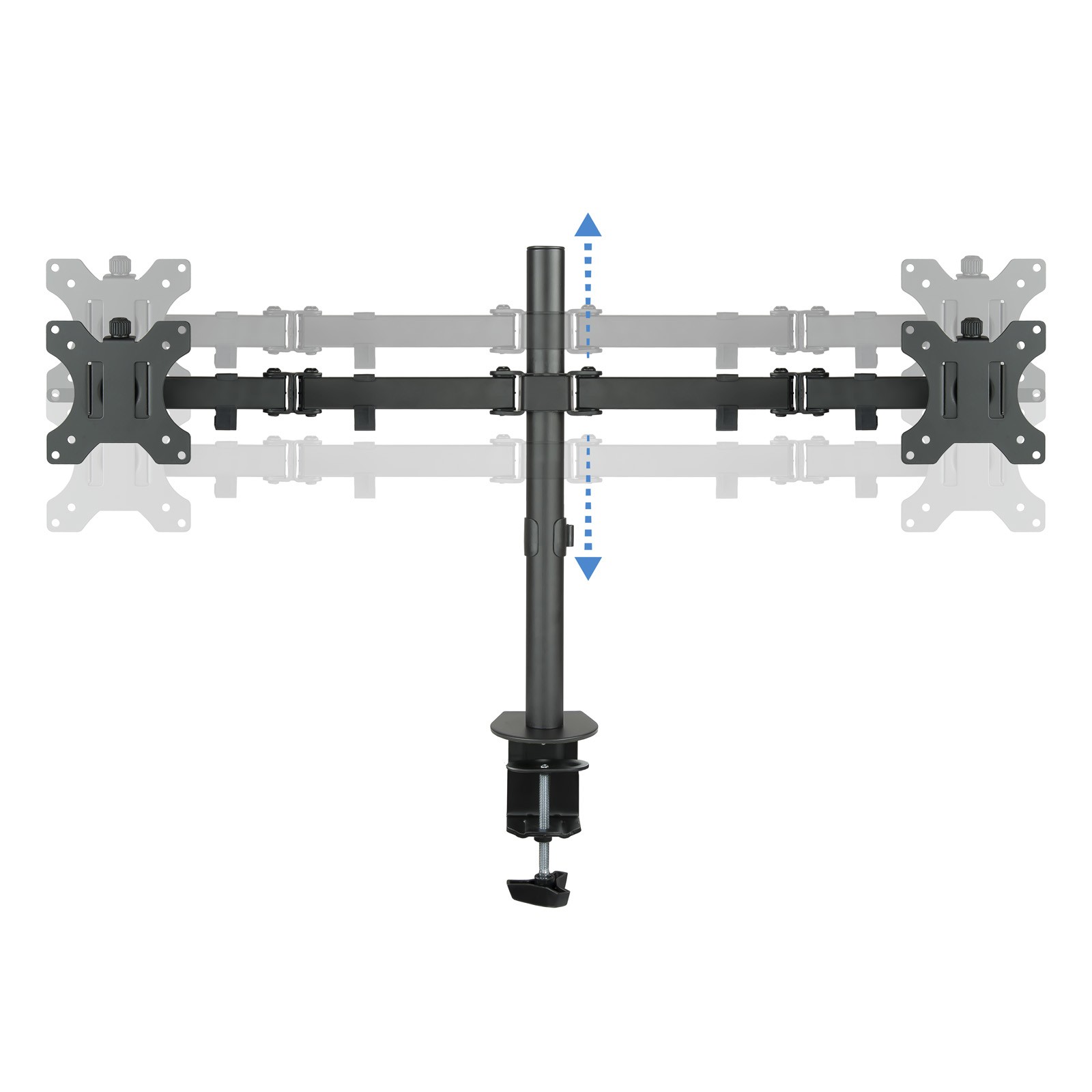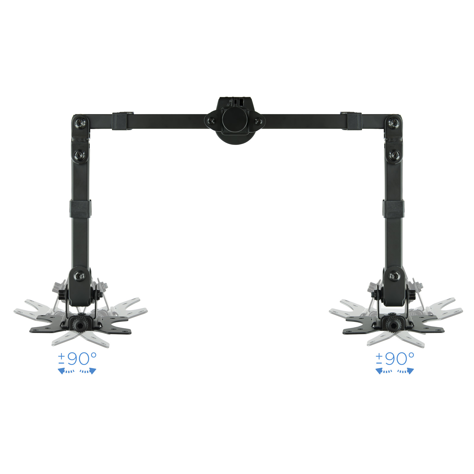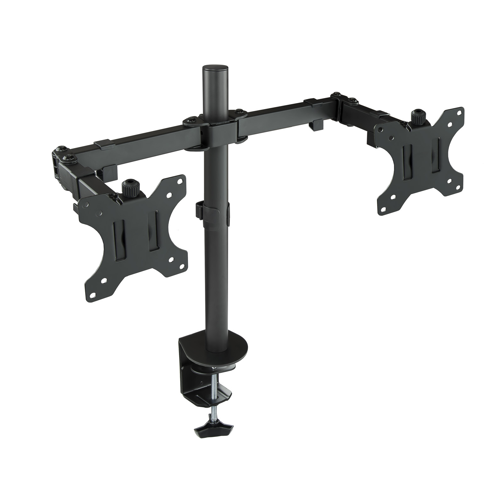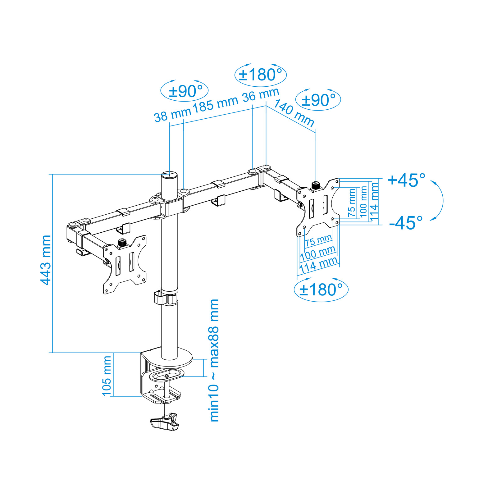 – Soporte de mesa orientable para 2 pantallas (monitor / plasma / LCD / LED) de entre 13″ a 32″ (depende de la instalación y del espacio disponible) con 3 puntos de giro- Permite instalación en la mesa, a través de abrazadera o a través de tornillo pasante.- Cumple los estándares de VESA 75x75mm, 100x100mm- Carga Máxima 8kg (cada brazo)- Ángulo de inclinación: -45o y +45o- Ángulo de giro: -90o / +90o- Ángulo de rotación: -180o / +180o- Longitud máxima extendida: 798mm- Altura ajustable de hasta 443mm- Color: Negro