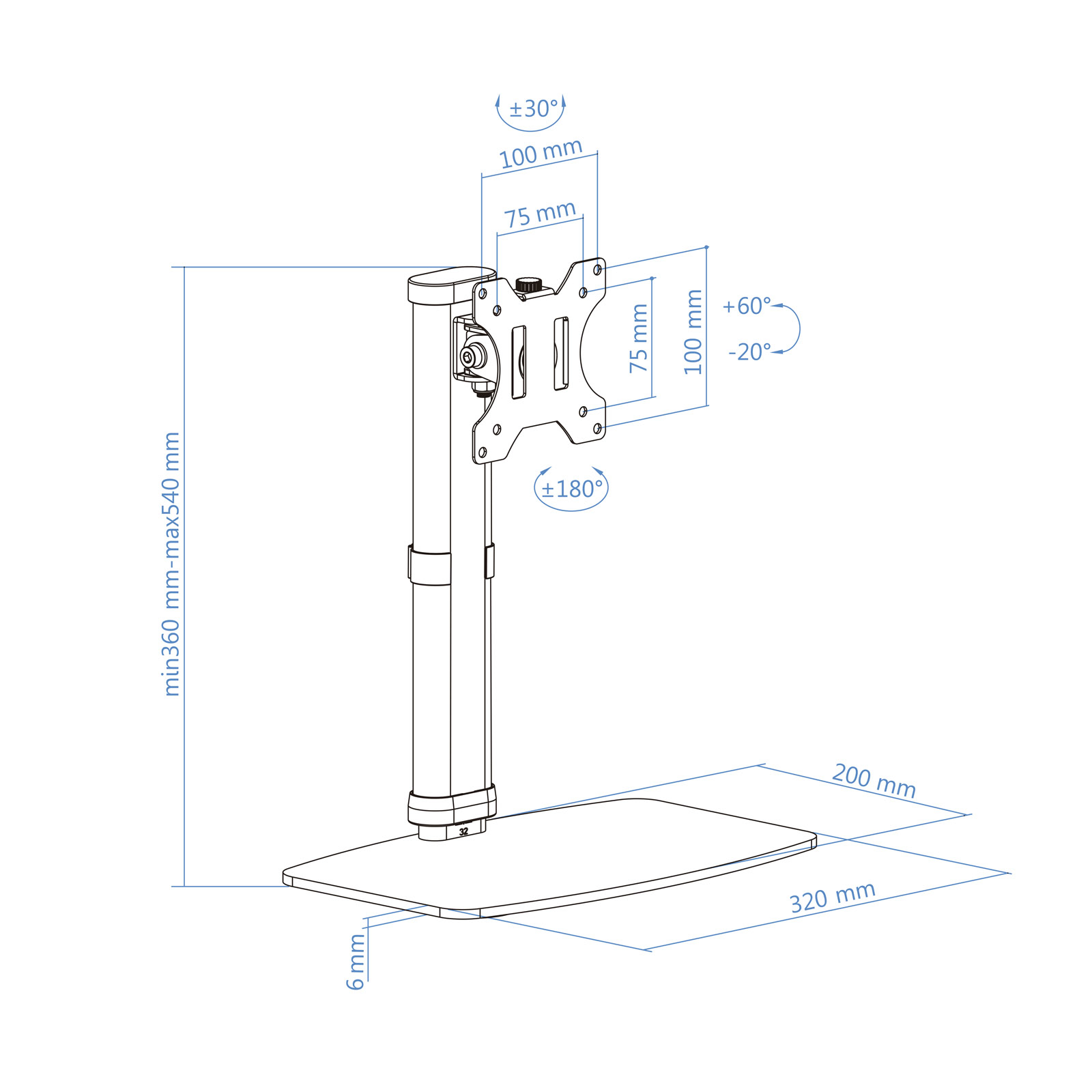 Soporte de mesa para pantallas 17”-27”